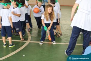 A Gincana, aguardada com grande expectativa pelos estudantes, promoveu a união das turmas e o engajamento de todos. Logo na entrada da quadra, os estudantes já eram desafiados a entrar no clima da brincadeira, superando alguns obstáculos muito divertidos. A organização prévia das equipes com cores diversas despertou o espírito de colaboração mútua e o sentimento de pertencimento à turma, fortalecendo os vínculos e laços de amizade entre os estudantes. Além disso, as brincadeiras em grupo exigiam a participação de todos, a cooperação, a organização e o clima amistoso entre as equipes.