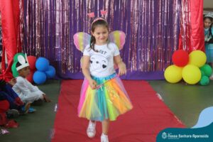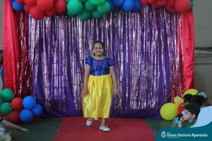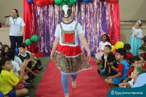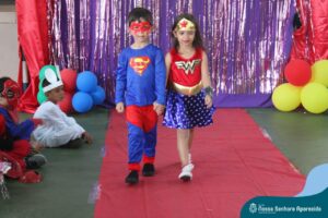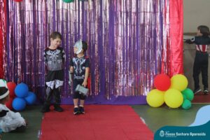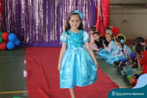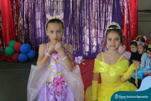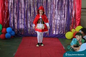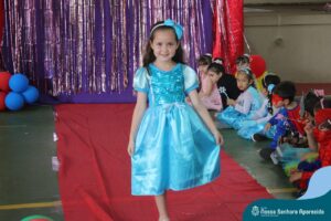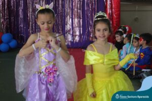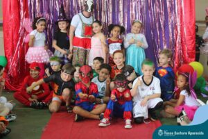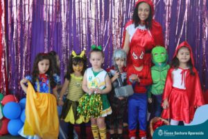 Na Festa à fantasia, além de representar algumas das profissões que mais admiram, os estudantes e professoras puderam dar asas à fantasia e à imaginação, representando personagens que povoam o universo infantil como fadas, bruxas, princesas, heróis, monstros e vilões.