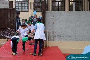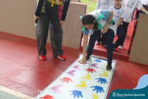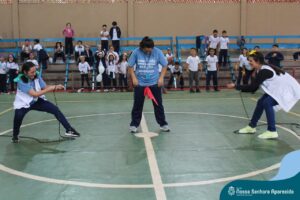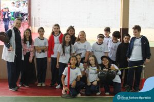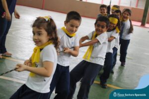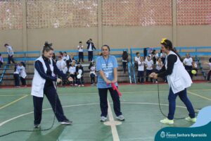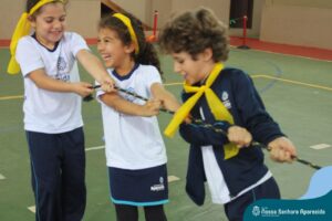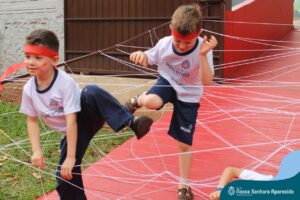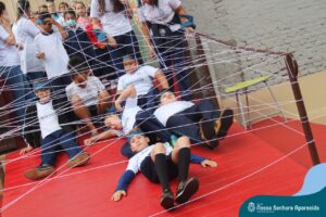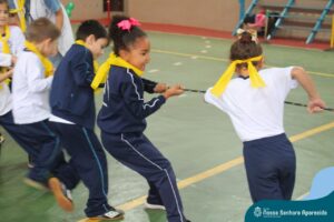 A Gincana, aguardada com grande expectativa pelos estudantes, promoveu a união das turmas e o engajamento de todos. Logo na entrada da quadra, os estudantes já eram desafiados a entrar no clima da brincadeira, superando alguns obstáculos muito divertidos. A organização prévia das equipes com cores diversas despertou o espírito de colaboração mútua e o sentimento de pertencimento à turma, fortalecendo os vínculos e laços de amizade entre os estudantes. Além disso, as brincadeiras em grupo exigiam a participação de todos, a cooperação, a organização e o clima amistoso entre as equipes.