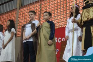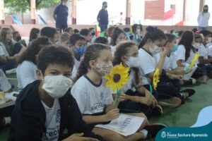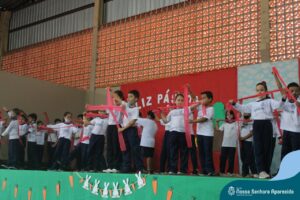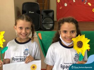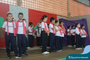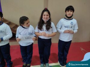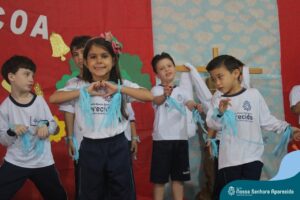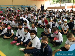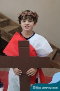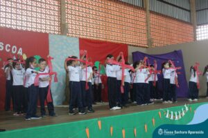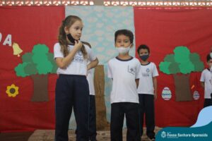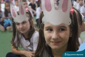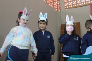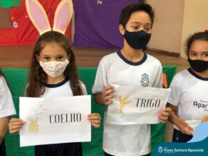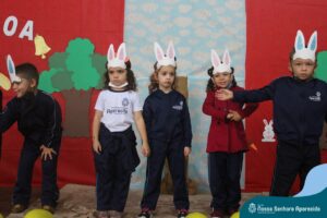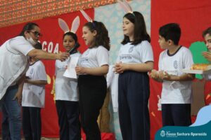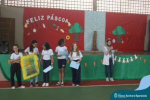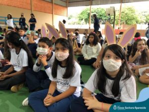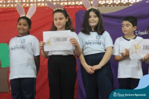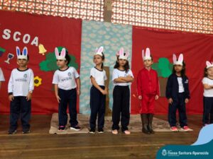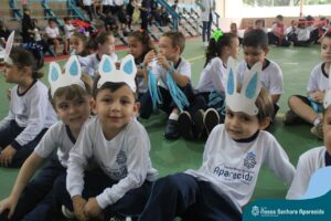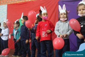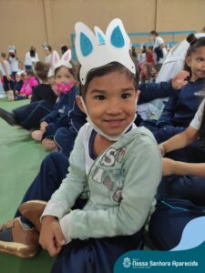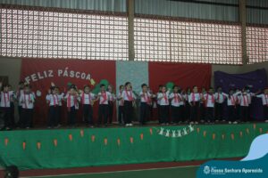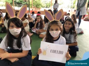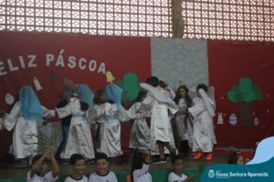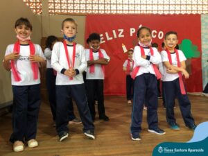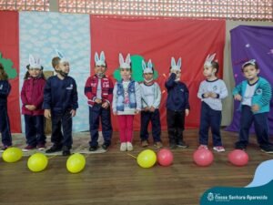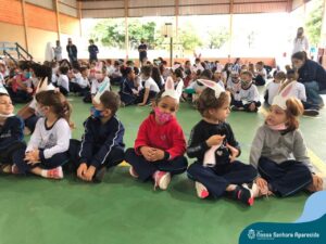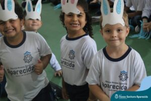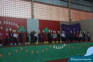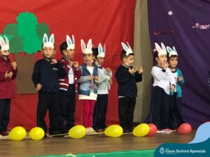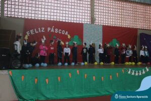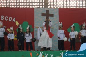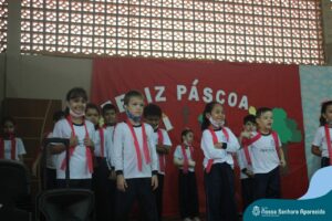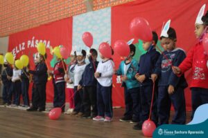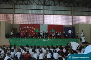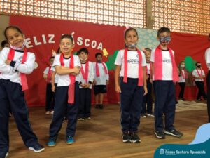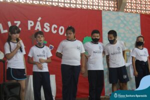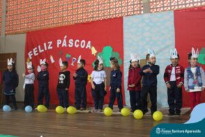 Conforme a letra de uma música cantada pelos alunos, “Páscoa é, antes de tudo, alegria em nossos corações”. Por isso, nesse dia 13 de abril de 2022, a quadra da Escola Nossa Senhora Aparecida tornou-se palco para uma grande festa marcada pela fala da Irmã Hilda e por belíssimas apresentações dos estudantes da Educação infantil e do Ensino Fundamental.