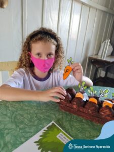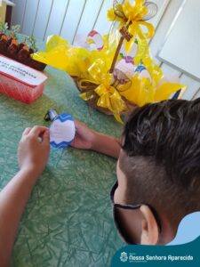 Na última semana, a partir do tema Páscoa, a professora implementou um projeto que conseguiu despertar grande interesse e engajamento dos alunos, mobilizando-os para momentos muito significativos de aprendizagem. O projeto começou com uma contação de uma história que enfatizava “o verdadeiro sentido da Páscoa”. A história despertou a curiosidade dos alunos e rendeu muitas conversas em sala de aula, nas quais os alunos puderam desenvolver a oralidade e a capacidade de expressão, ao apresentarem suas ideias e sentimentos e ao recontarem a narrativa, a partir da observação das ilustrações.