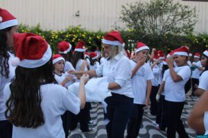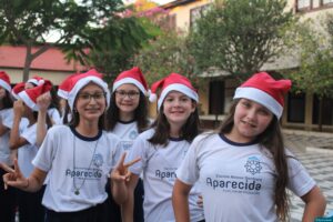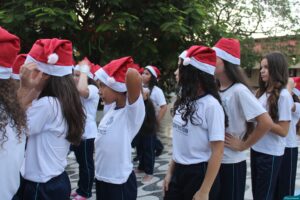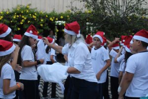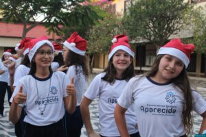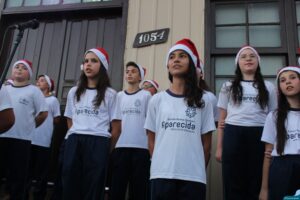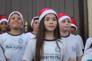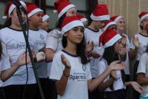 Na noite quente de 12 de dezembro de 2023, para celebrarem o encerramento de sua jornada na ENSA, após o pôr-do-sol, os estudantes dos quintos anos “A” e “B” participaram de uma “Cantata de Natal” em frente à fachada de entrada da Escola Nossa Senhora Aparecida.