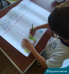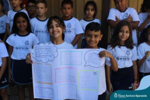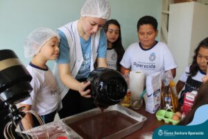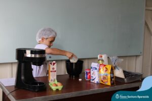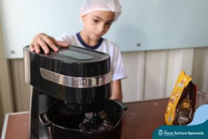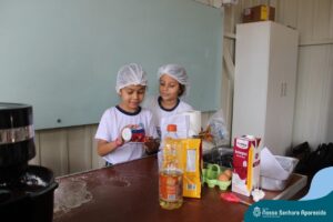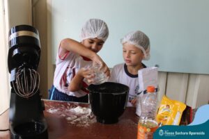 Em língua portuguesa, o gênero textual em pauta na turma do terceiro ano era “texto instrucional”. A proposta da Professora Roberta Kassiane era que cada criança pesquisasse em casa as receitas das gostosuras da família e trouxesse para a escola a sua receita preferida. Desse modo, eles tiveram que ter contato com diferentes receitas. Em matemática, os alunos aprenderam que suas preferências culinárias poderiam resultar em um gráfico e cada aluno votou na receita que considerou a melhor.
