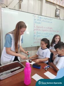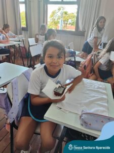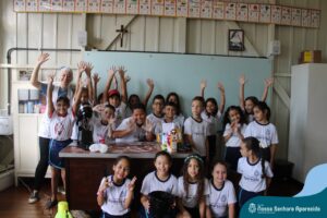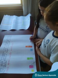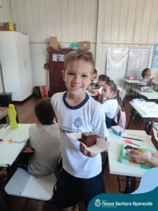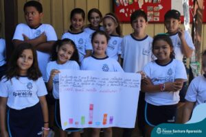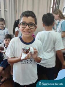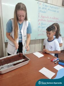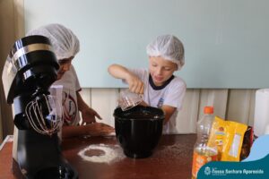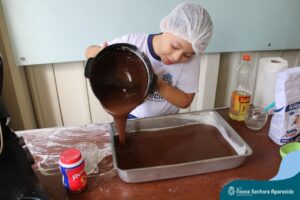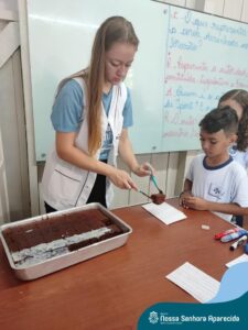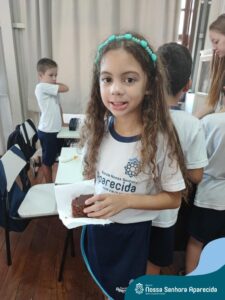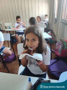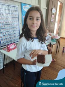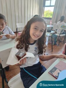 Juntos, eles produziram um gráfico com os votos da turma e ainda divulgaram a pesquisa na escola, dando a oportunidade de as outras turmas interagirem também. A culminância desse trabalho, foi a preparação em sala do bolo mais votado na turma. E, após tantos aprendizados, “poder saborear o bolo de chocolate com uma deliciosa cobertura foi incrível”, ressalta a professora Roberta. “Afinal, o bolo tinha o sabor de uma receita maravilhosa preparada com um ingrediente extra muito especial: a troca de experiências, a partilha e a alegria de dividir aquele momento com os amigos”.