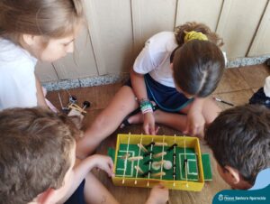Ao final da atividade, pensando que eles não se interessariam tanto pelo brinquedo, as professoras sugeriram que as crianças os doassem para os estudantes da Educação Infantil, mas eles curtiram tanto a ideia de brincar com brinquedos fabricados por eles, que quiseram levar seu invento para casa.