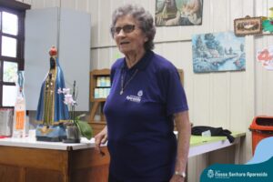 Neste ano de 2022, no dia dos professores, como sempre, não poderiam faltar o carinho e mensagens de agradecimento dos estudantes e seus familiares, a bênção da mãe e padroeira da escola e do Brasil, Nossa Senhora Aparecida, as palavras de encorajamento e de reconhecimento da diretora Irmã Hilda Stefani, acompanhadas de um mimo e um abraço caloroso a cada professora e funcionária que abraça a missão de contribuir para a educação dos estudantes da ENSA.