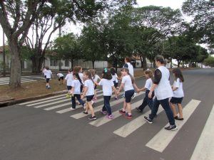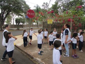 Entre as estratégias metodológicas, os alunos realizaram um passeio aos arredores da escola, onde puderam observar elementos que compõe o dia-a-dia no trânsito, tais como placas de sinalização, faixa de pedestres e hábitos dos motoristas de veículos terrestres.