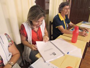 Durante a entrega, foi realizado um rito de unção para o fortalecimento na fé e na missão educadora das professoras, com base nas premissas de Bárbara Maix. “É um documento embebido de Deus”, comentou a coordenação.
