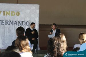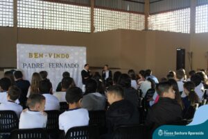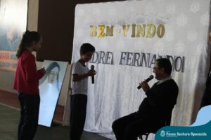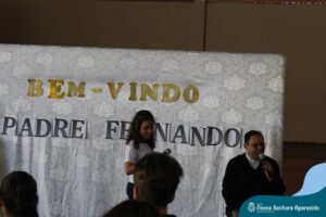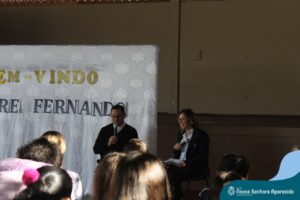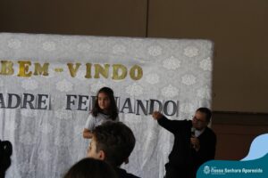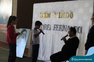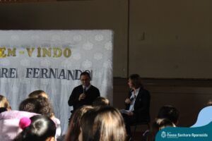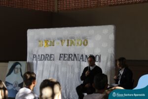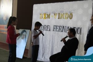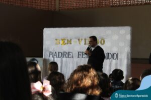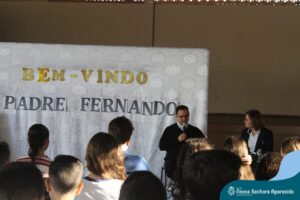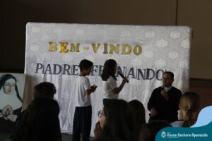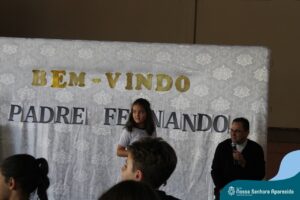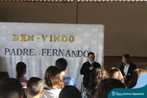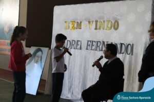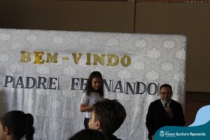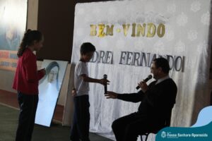 Padre Fernando tem um carinho muito especial pelas crianças e, sempre que pode, abençoa e preside as celebrações da Pastoral Escolar na escola, a convite das Irmãs, demonstrando seu cuidado e também sua preocupação para com a evangelização das novas gerações.