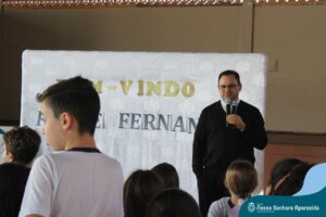 Por isso, para dar início ao mês vocacional e também pela comemoração do Dia dos Padres, que acontece no primeiro domingo de agosto, a ENSA organizou um momento muito especial dos alunos dos quintos anos com o Padre Fernando Lucena, vigário paroquial.