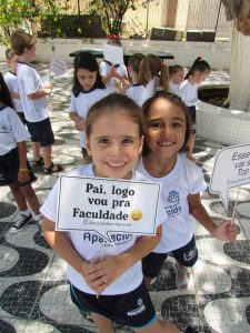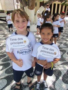 Para receber seus alunos neste primeiro dia de aula, a Escola Nossa Senhora Aparecida promoveu atividades pedagógicas para facilitar a integração dos estudantes com o espaço escolar, professores e colegas, incluindo brincadeiras, brindes e visitas nas salas de aula. “É uma ótima estratégia para amenizar o estresse das crianças, que naturalmente ficam ansiosas neste início de ano”, comenta a coordenação pedagógica.