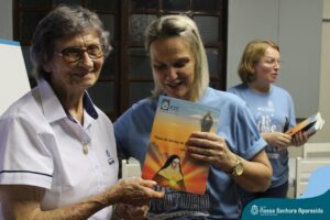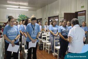 Na última quinta-feira, dia 13 de abril, em momento celebrativo na ENSA, as educadoras receberam das mãos da diretora Irmâ Hilda e da diretora auxiliar, Sueli Sanches, o Plano do Serviço de Pastoral Escolar da Rede ICM. A oração foi dirigida pela Irmã Hilda e pela coordenadora pedagógica Sílvia Helena de Araújo, que participou do encontro formativo em Porto Alegre e fez o repasse para o corpo docente da ENSA. Segundo a coordenadora, “a Pastoral Escolar é o coração que impulsiona o nosso agir, a nossa prática diária. Por isso, ela deve ser fomentada, alimentada, vivenciada cada vez com mais amor, entre as educadoras”.