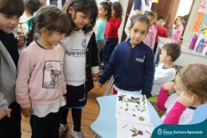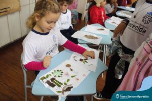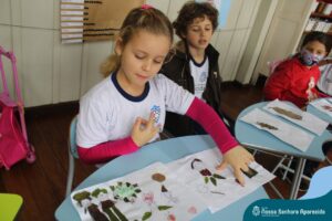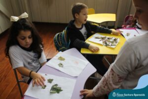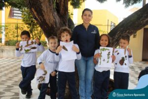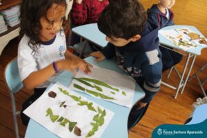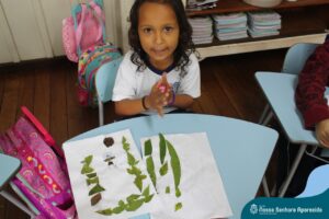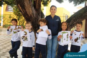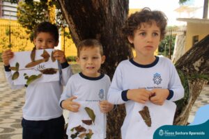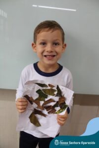 Dando continuidade aos projetos relacionados ao Meio ambiente, a Professora Juliana Moreira organizou, no dia 10 de junho, com sua turma do Jardim III, uma exposição de uma atividade desenvolvida a partir de colagens de folhas e desenhos.