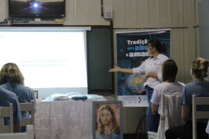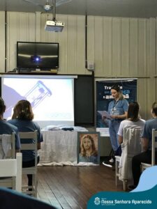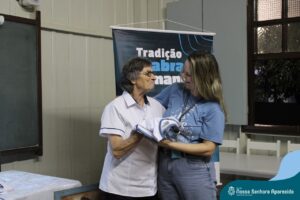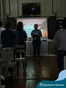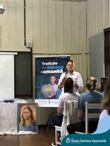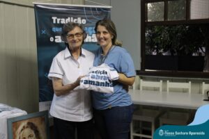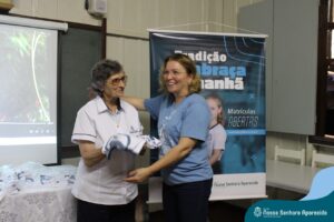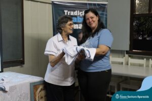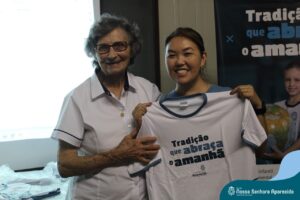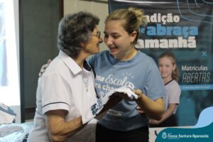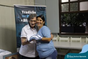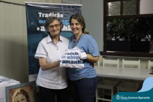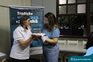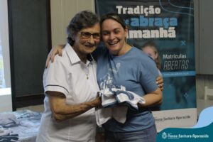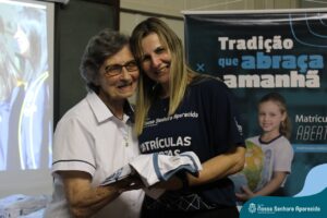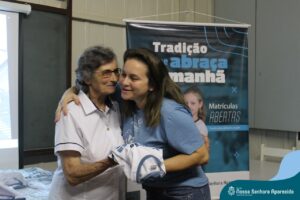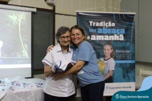 Na ENSA, além da presença da Irmã Hilda Stefani e Ida Lorenzatto, diretora e tesoureira da Escola, em 2023, este momento aconteceu no dia 27 de junho e contou com a presença da Irmã Maria Aparecida, filha desta terra que, sempre que pode, brinda a comunidade escolar com sua presença, sua experiência, seus ensinamentos e com suas palavras encorajadoras. Além do momento de espiritualidade conduzido pela pedagoga Sílvia Helena de Araújo, com a participação das Irmãs, houve a apresentação dos materiais da campanha produzidos pela equipe de Marketing da Rede ICM, com a participação de pais, alunos e profissionais da ENSA, a distribuição das camisetas que apresentam a campanha de matrículas de 2024 e ainda um coquetel, no clima festivo de festa junina.