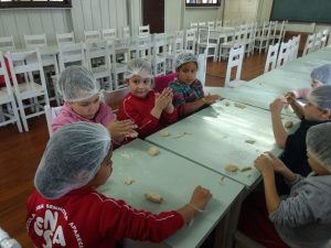 Painéis coloridos, lembrancinhas caprichadas, homenagens na quadra e ainda um lanche da tarde com palitinhos salgados feitos pelas próprias crianças.