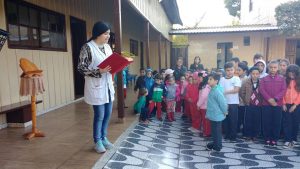 A Bíblia, livro homenageado durante todo o mês, está visitando as salas de aula, diariamente, com a leitura de um versículo aberto ao acaso, possibilitando ao alunos e professores um momento oportuno para refletir a Palavra de Deus!
