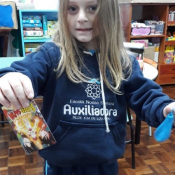 Todos ficaram ansiosos para ouvir os colegas e depois apresentar suas atividades de férias. A atividade contemplou a organização de ideias, provocou a classificação dos materiais e potencializou a expressão oral das crianças.
