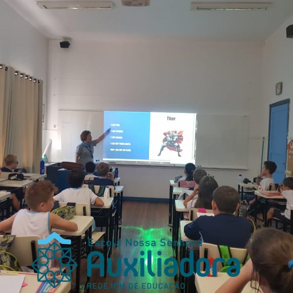 ⁉️ Os alunos dos anos iniciais brincaram com o jogo: Who am I? ⁉️ O desafio era descobrir os personagens secretos de cartoons famosos a partir de algumas características mencionadas. ⁉️ Foi muito divertido! Confira as fotos dos 4º anos. 👩🏫 Teacher Rúbia.