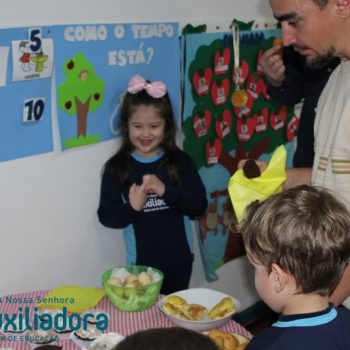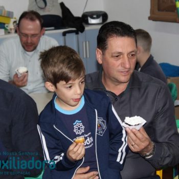 As crianças confeitaram para um delicioso café da manhã preparado com muito carinho. As crianças ainda prepararam uma apresentação homenageando o seu papai.🥰