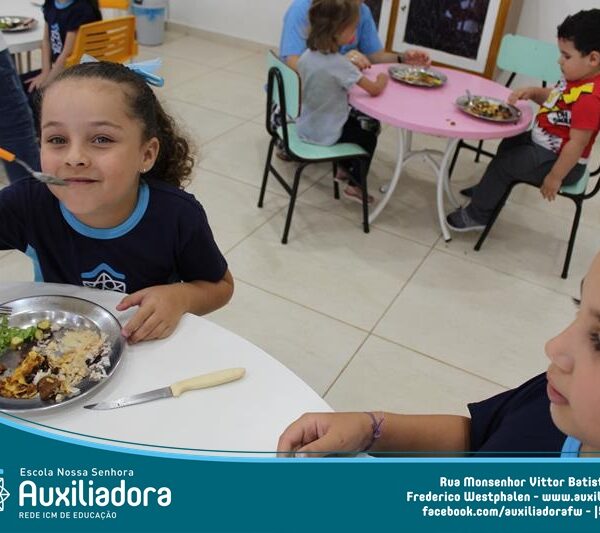 ▶️ Tem almoço no Auxiliadora? Tem Sim!!! 👏👏 🍲🥣Você sabia que o Turno Extracurricular do Auxiliadora oferece almoço?🥙🌮 ✔️Pratos coloridos e divertidos são uma alternativa na hora de servir as refeições para as crianças.. ✔️Principalmente para aquelas que relutam em comer verduras e frutas, alimentos ricos em vitaminas e minerais e que são indispensáveis em uma alimentação saudável. ✔️A alimentação saudável garante inúmeros benefícios para a criança e também ajuda a formar os hábitos alimentares para quando adultos. ▶️São pratos preparados pela nutricionista Danila Luza pensando sempre na alimentação saudável do seu filho.