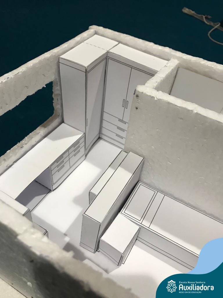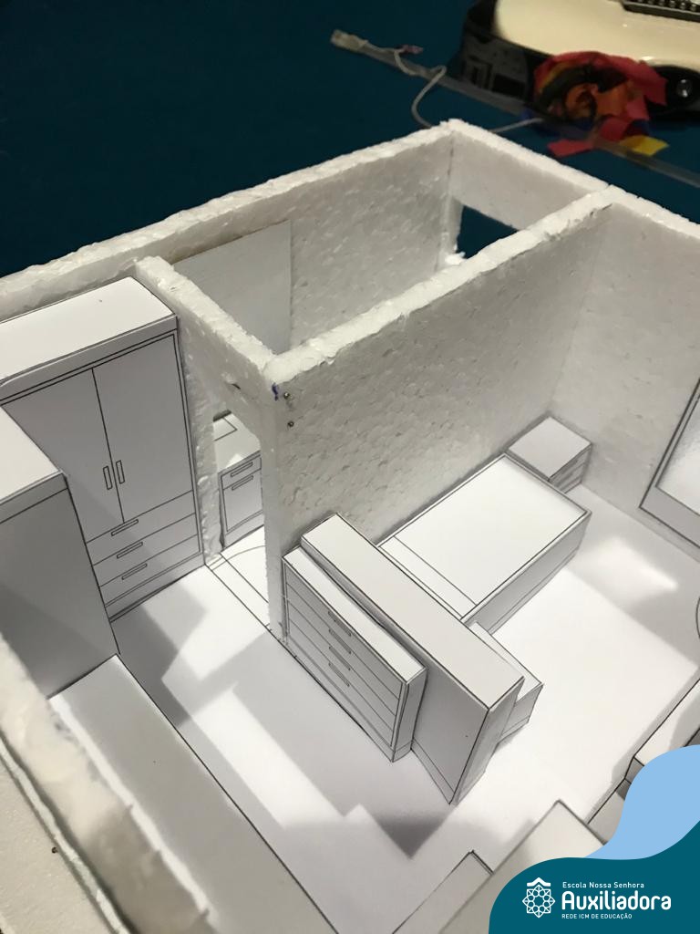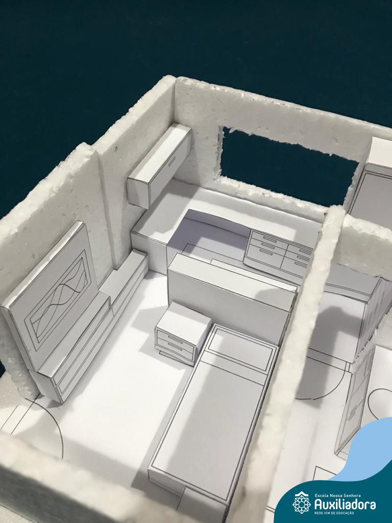 āœ…Ā “Resolvi fazer uma maquete do meu quarto com os elementos e móveis mais detalhados. Nessa maquete, podemos observar a presenƧa de diversas formas geomĆ©tricas, e conceitos como: volume, altura, comprimento, largura, profundidade e proporção.”