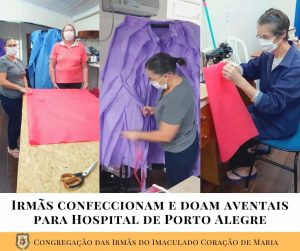 🏥 PORTO ALEGRE (RS) | Em meio à pandemia do #Coronavírus, mais uma ação solidária das Irmãs ICM ajuda a tecer a rede do bem. Religiosas e uma colaboradora do Instituto São Benedito – Rede ICM já produziram mais de 130 aventais, que foram doados ao Hospital Divina Providência, na capital.