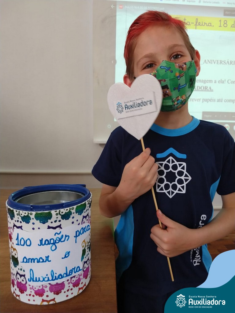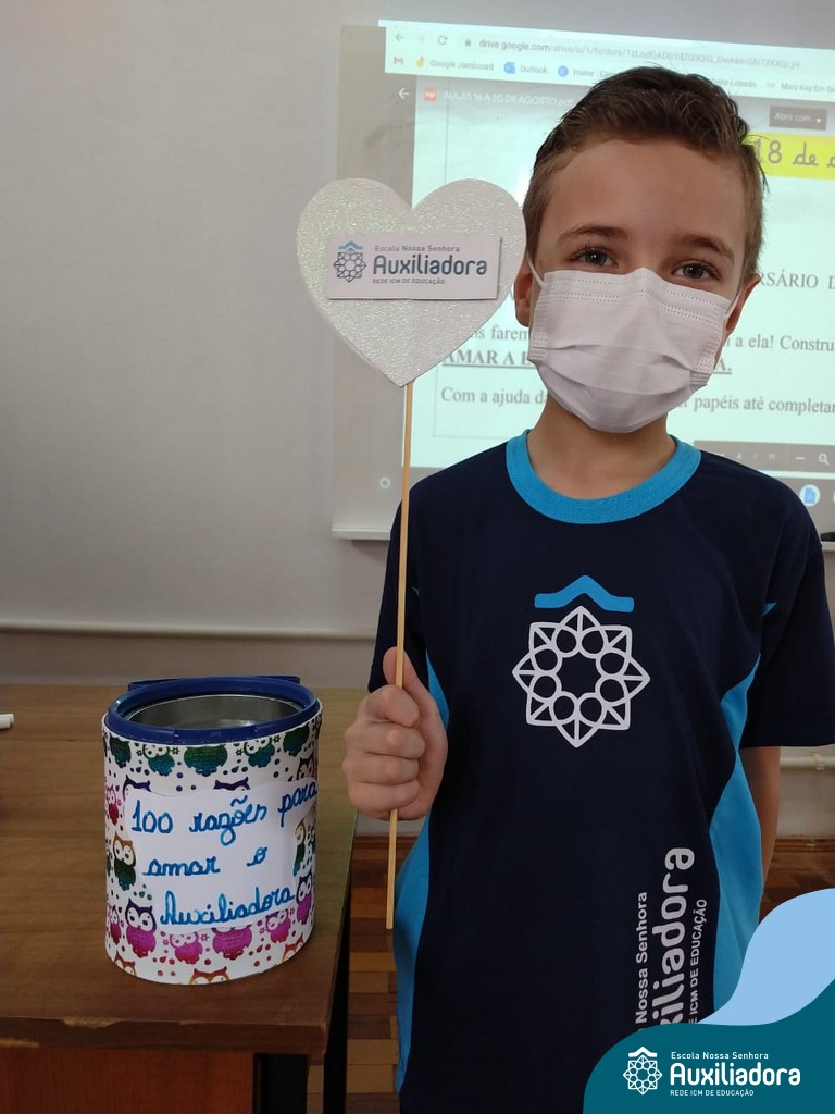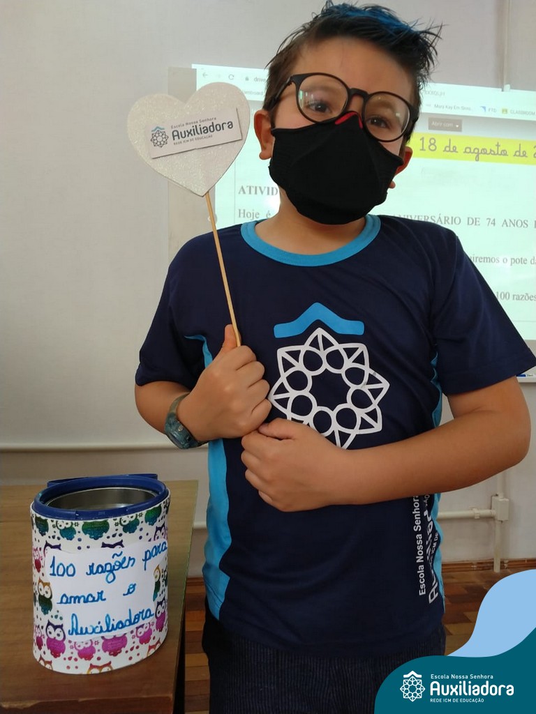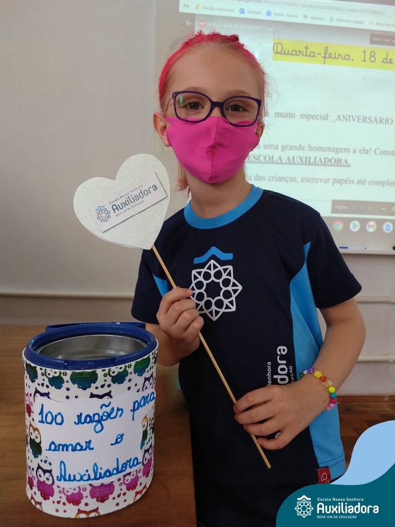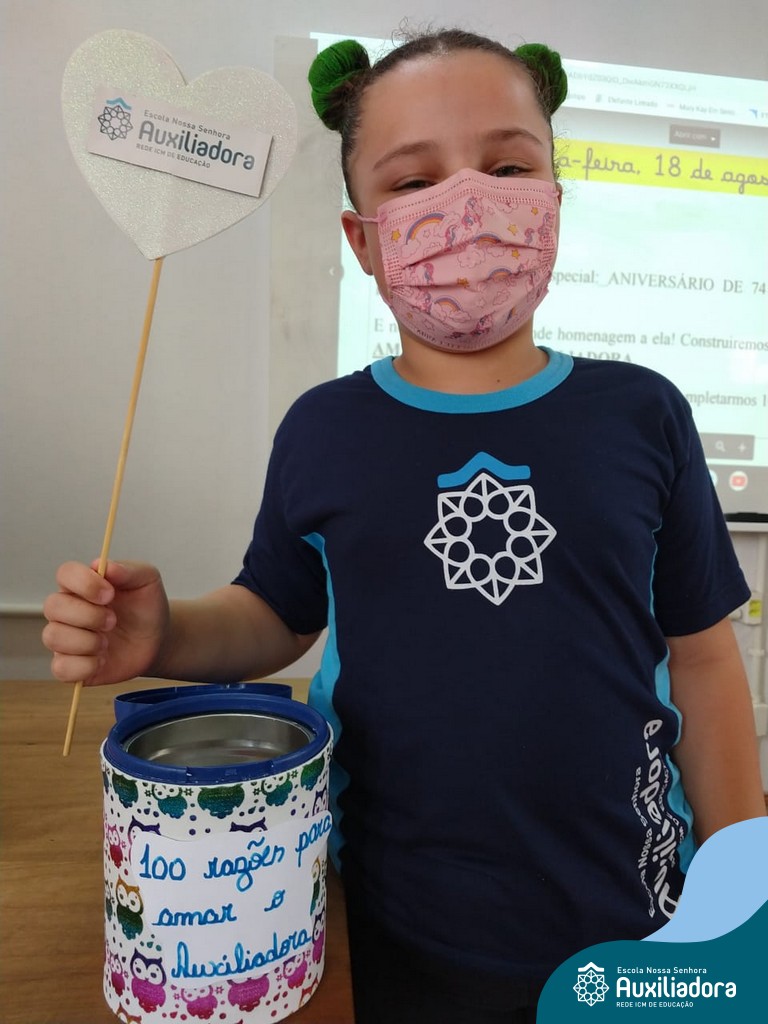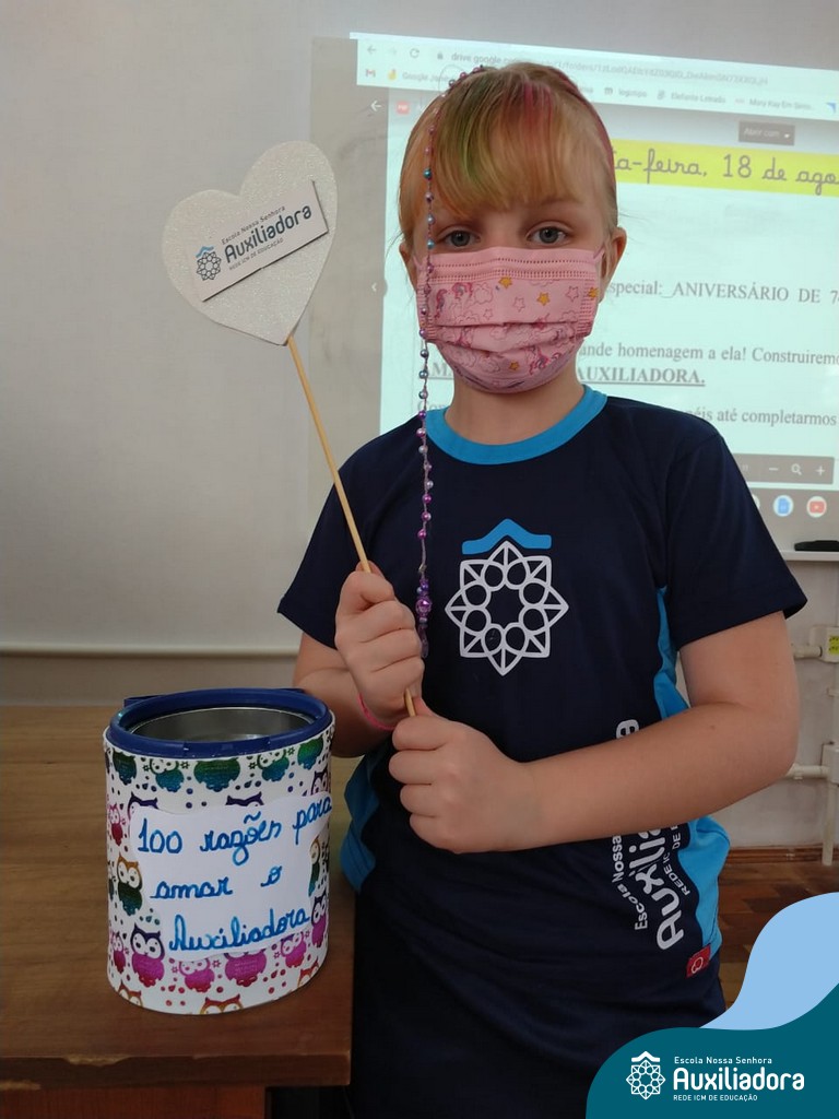 👏Para comemorar os 74 anos da nossa querida escola, as turmas do 2° ano 21 e 22 construíram um pote com “100 razões para amar a escola Auxiliadora”!
