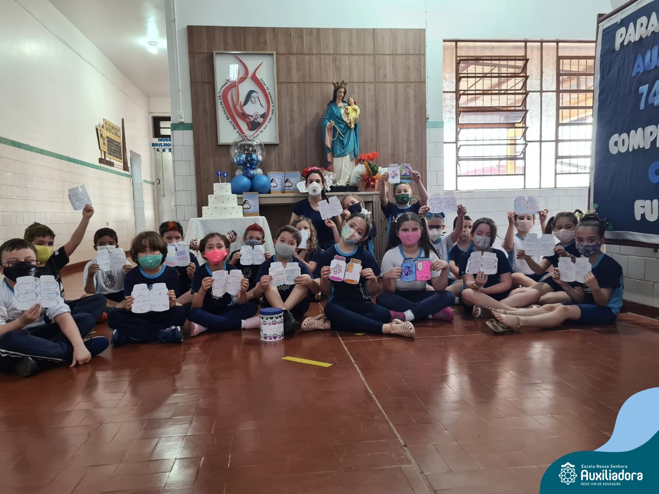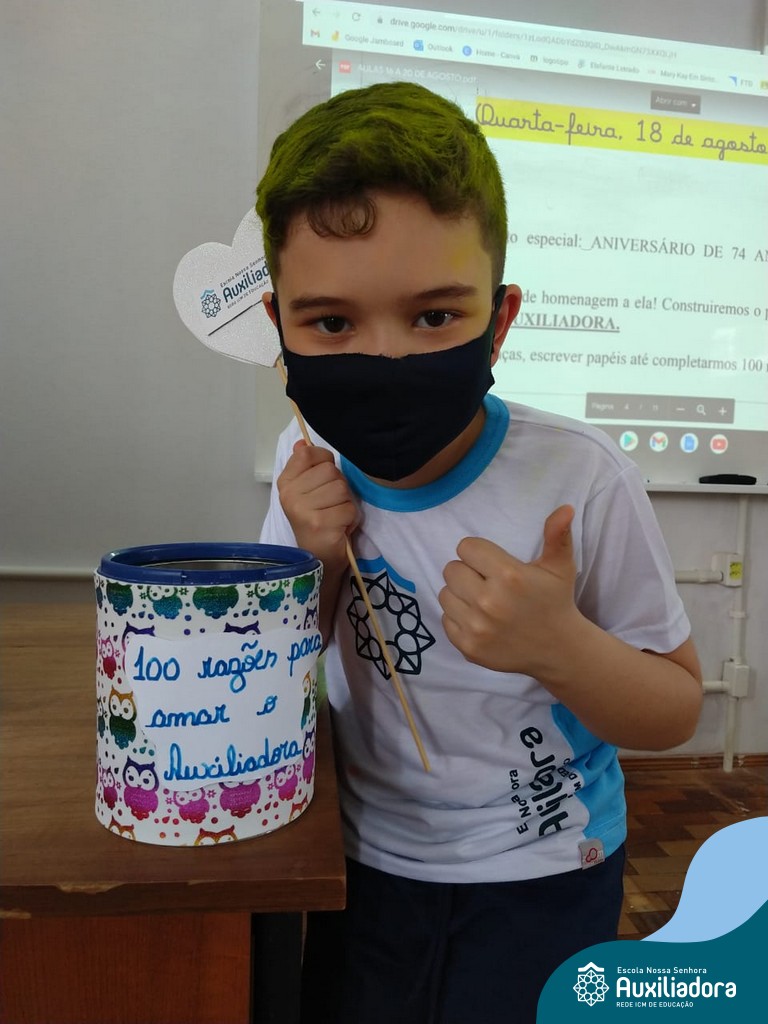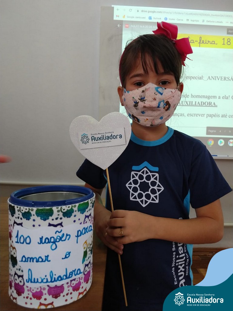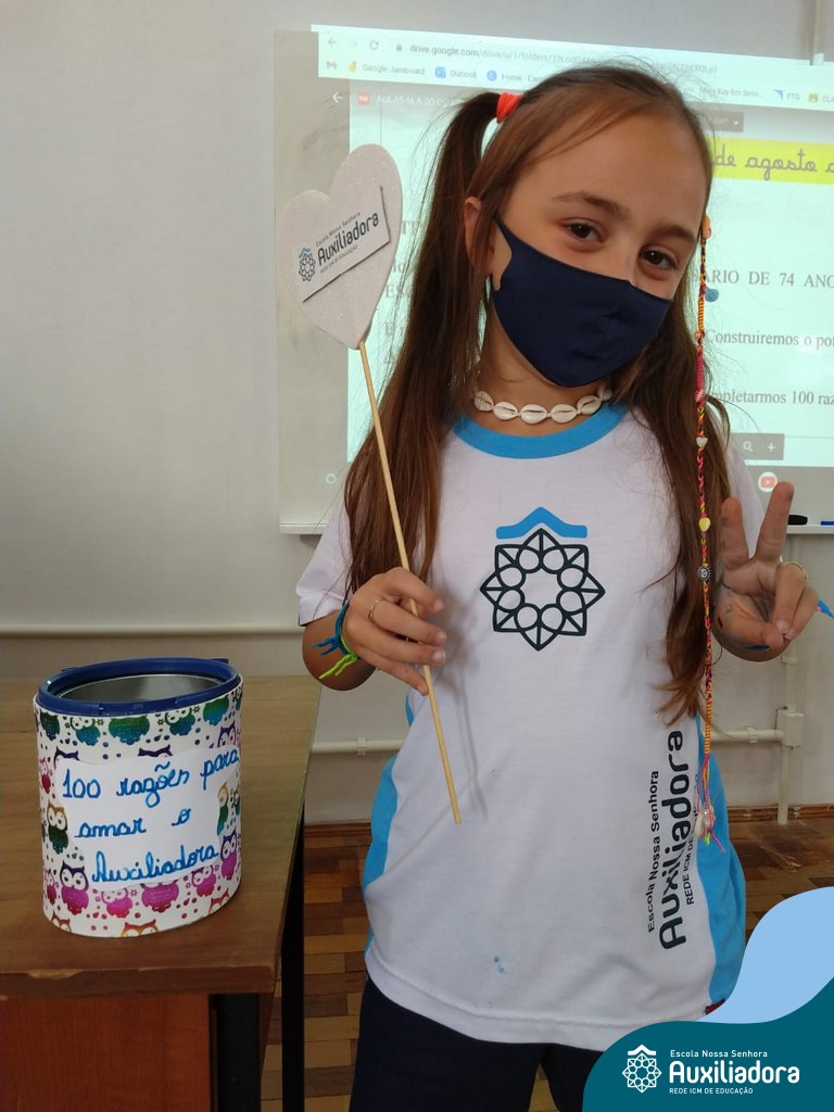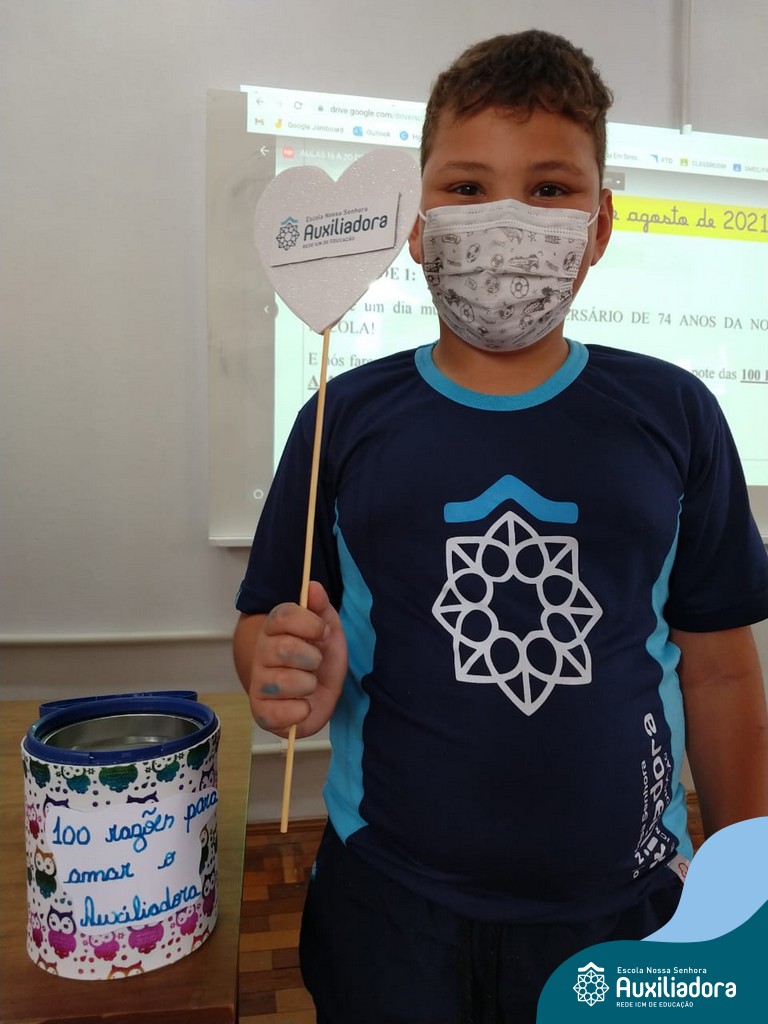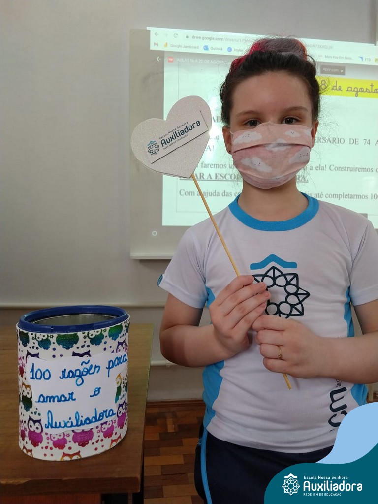 👏Para comemorar os 74 anos da nossa querida escola, as turmas do 2° ano 21 e 22 construíram um pote com “100 razões para amar a escola Auxiliadora”!