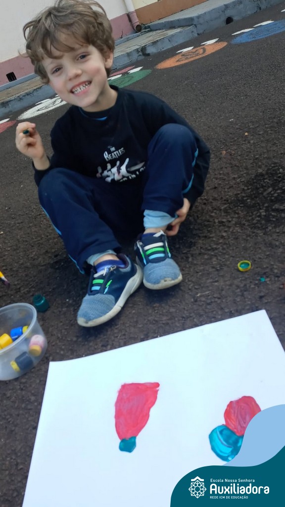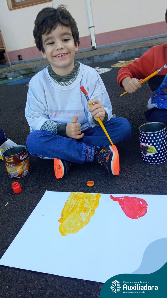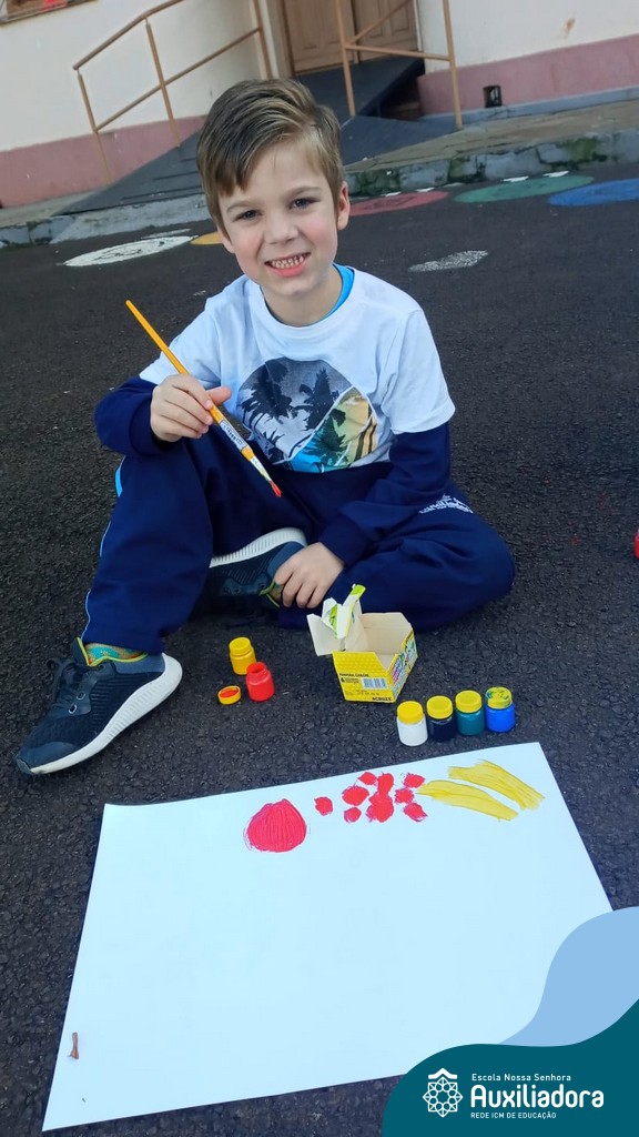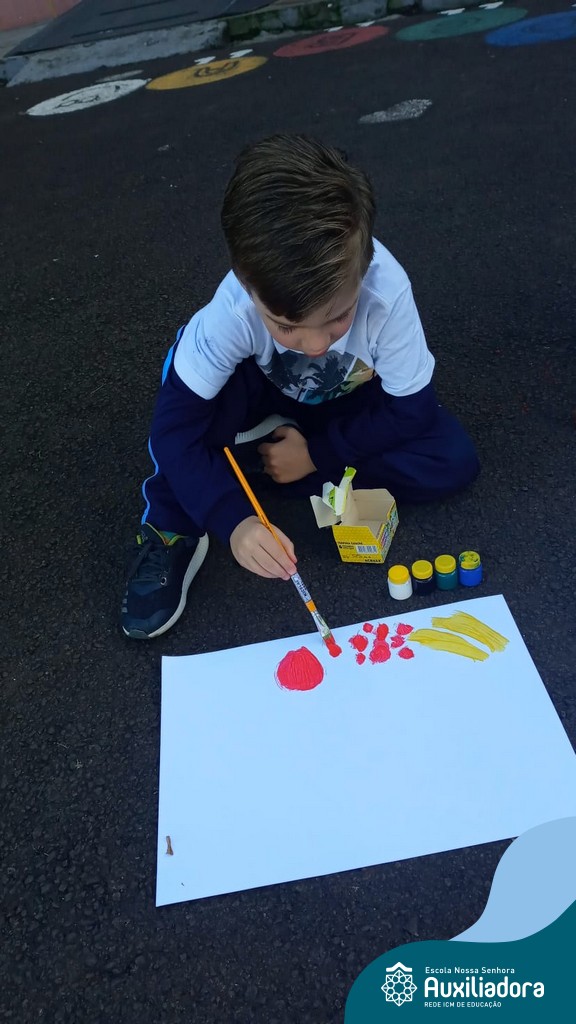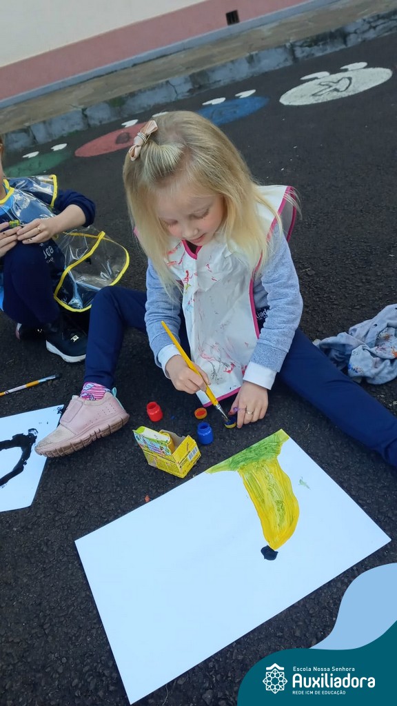 Veja que linda e colorida a cesta de vegetais da turma do Pré 1 B. A pintura ao ar livre desenvolve o senso de observação, imaginação, percepção da variedade de cores, formas e texturas.
