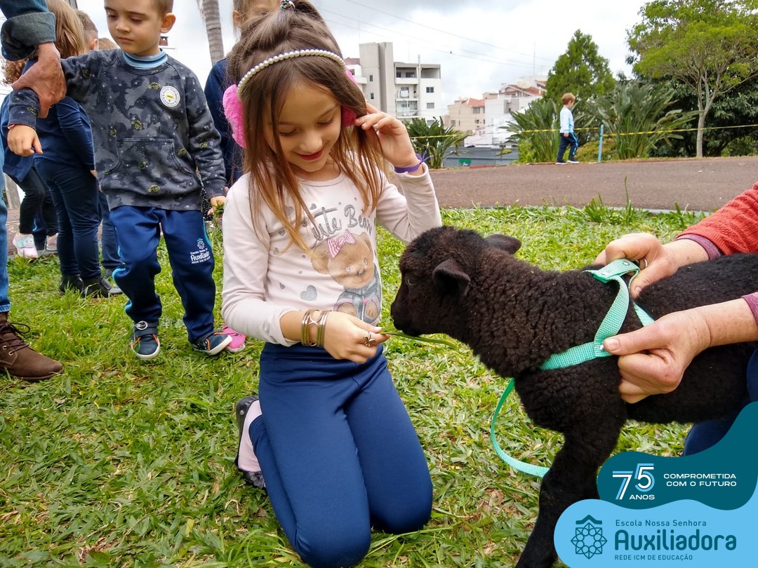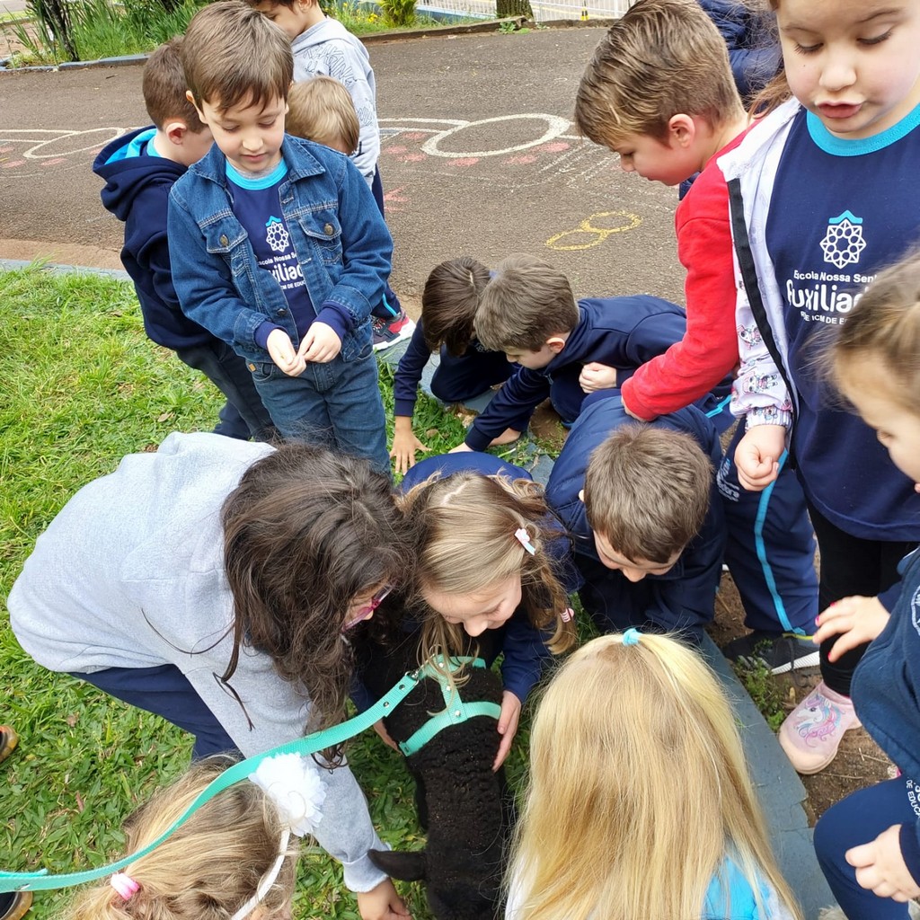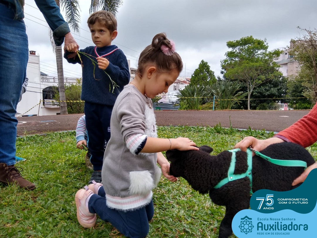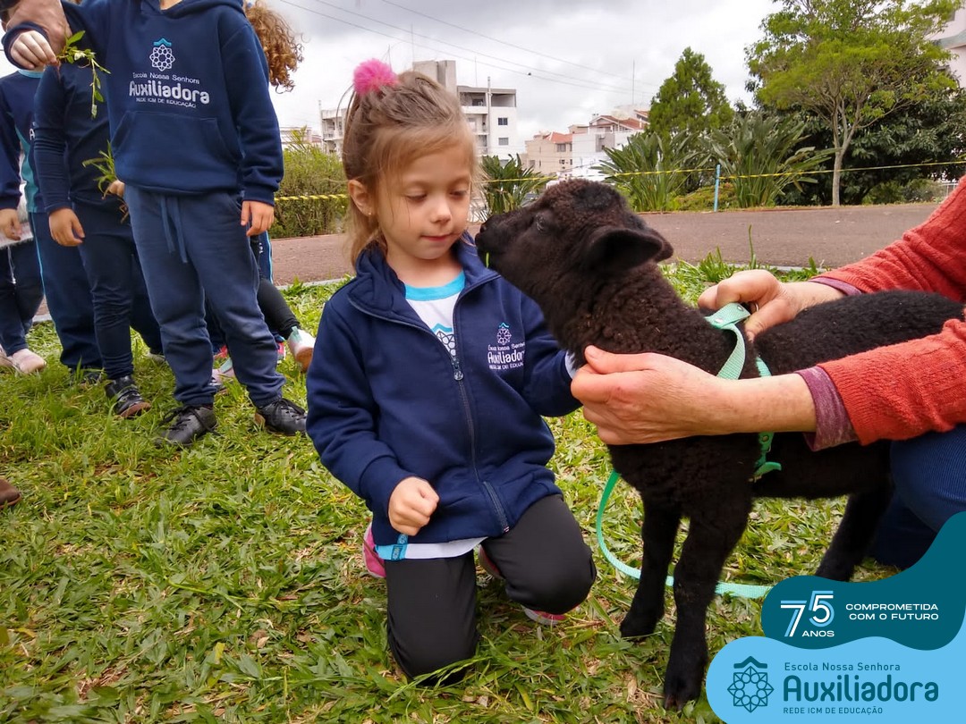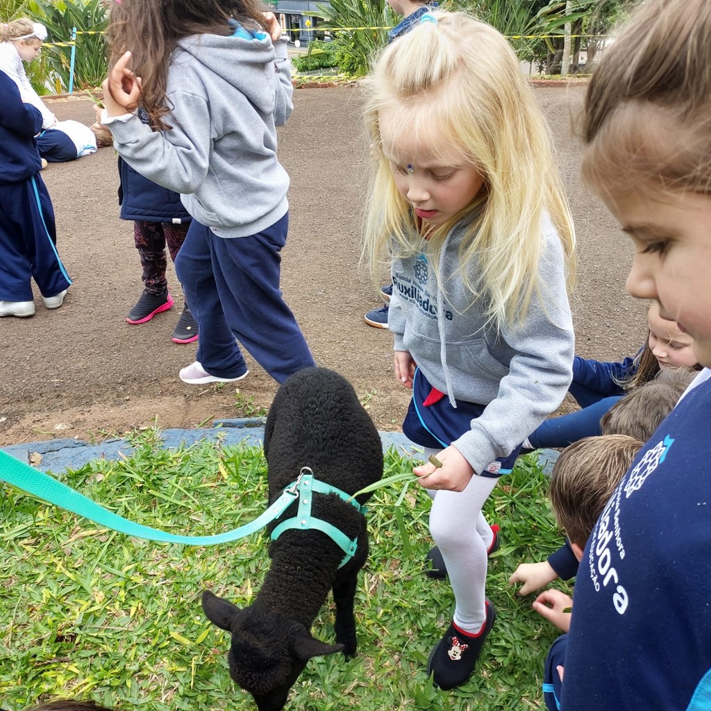 Os alunos do Pré 1 trabalharam a Parábola “A Ovelha Perdida” e tiveram a oportunidade de experienciar um lindo momento com uma ovelhinha. Puderam tocar, cuidar, dar carinho e atenção e compreender os ensinamentos da parábola em uma significativa experiência prática.