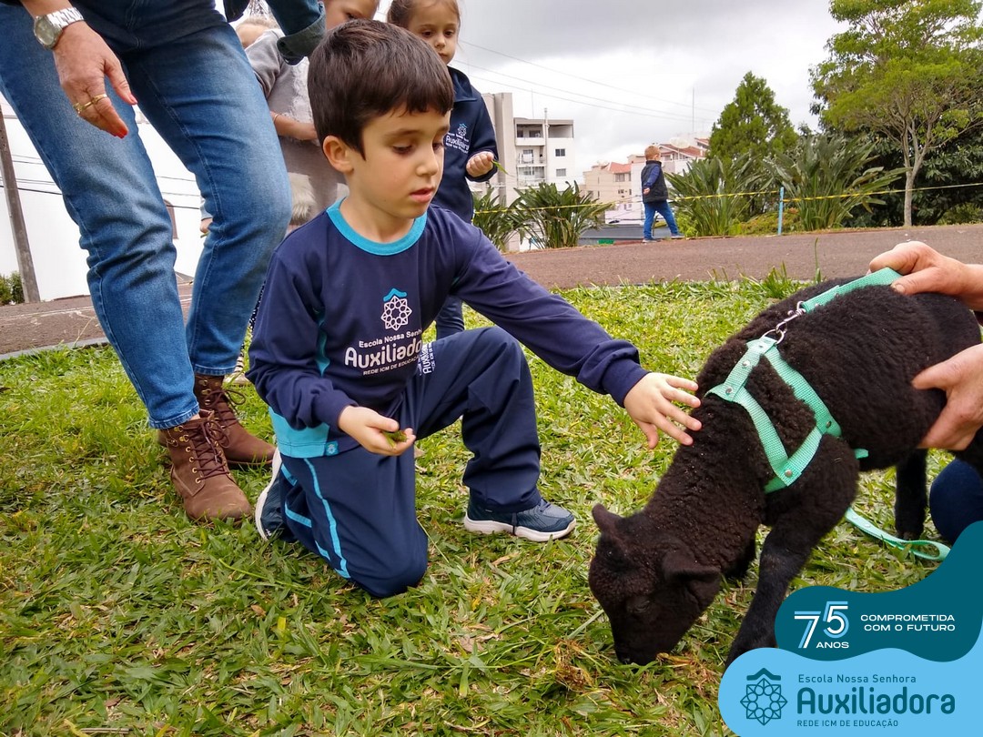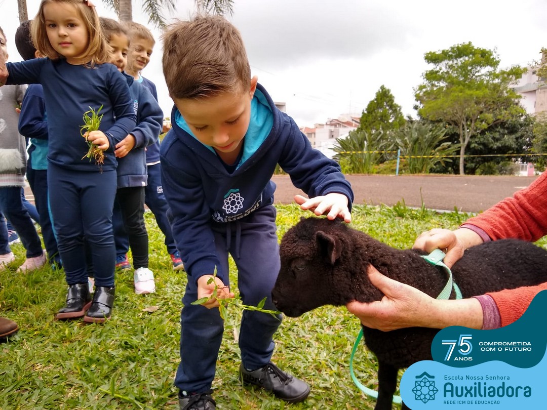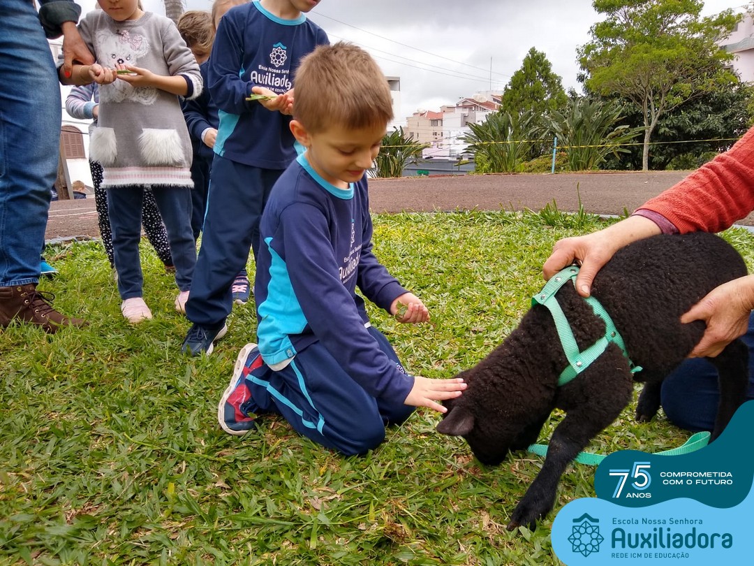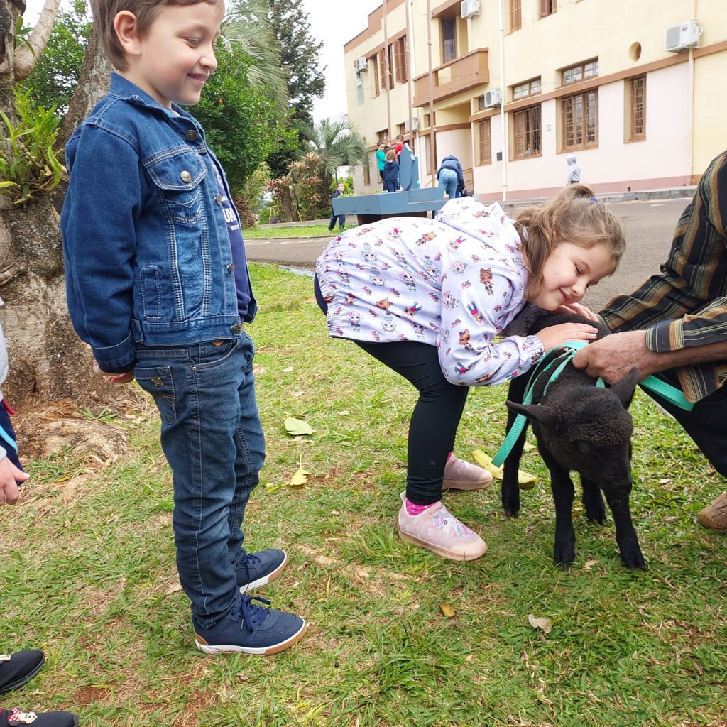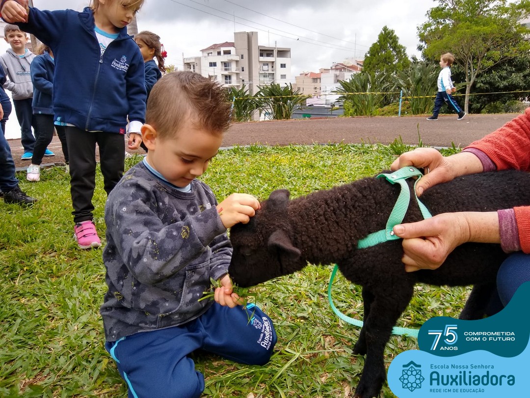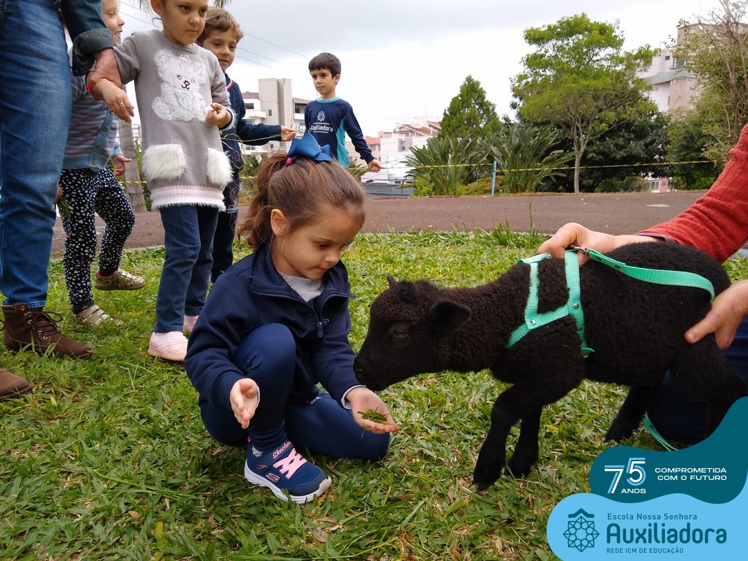 Os alunos do Pré 1 trabalharam a Parábola “A Ovelha Perdida” e tiveram a oportunidade de experienciar um lindo momento com uma ovelhinha. Puderam tocar, cuidar, dar carinho e atenção e compreender os ensinamentos da parábola em uma significativa experiência prática.