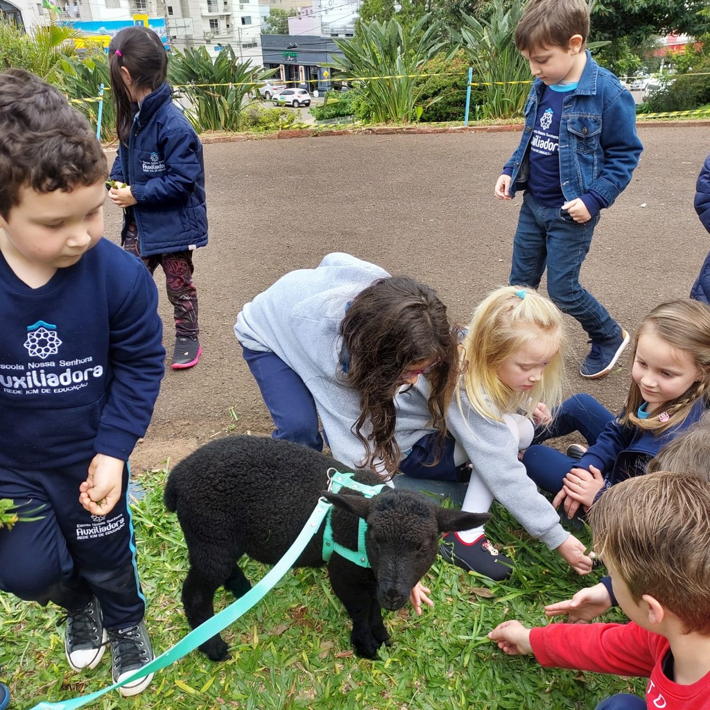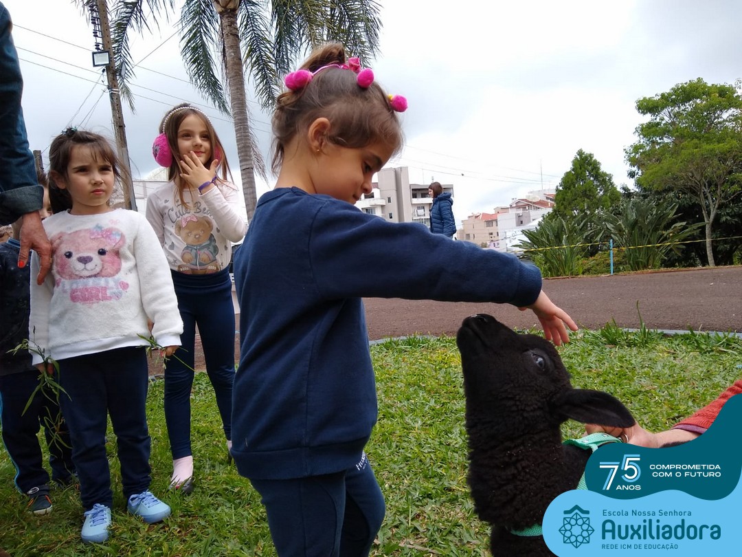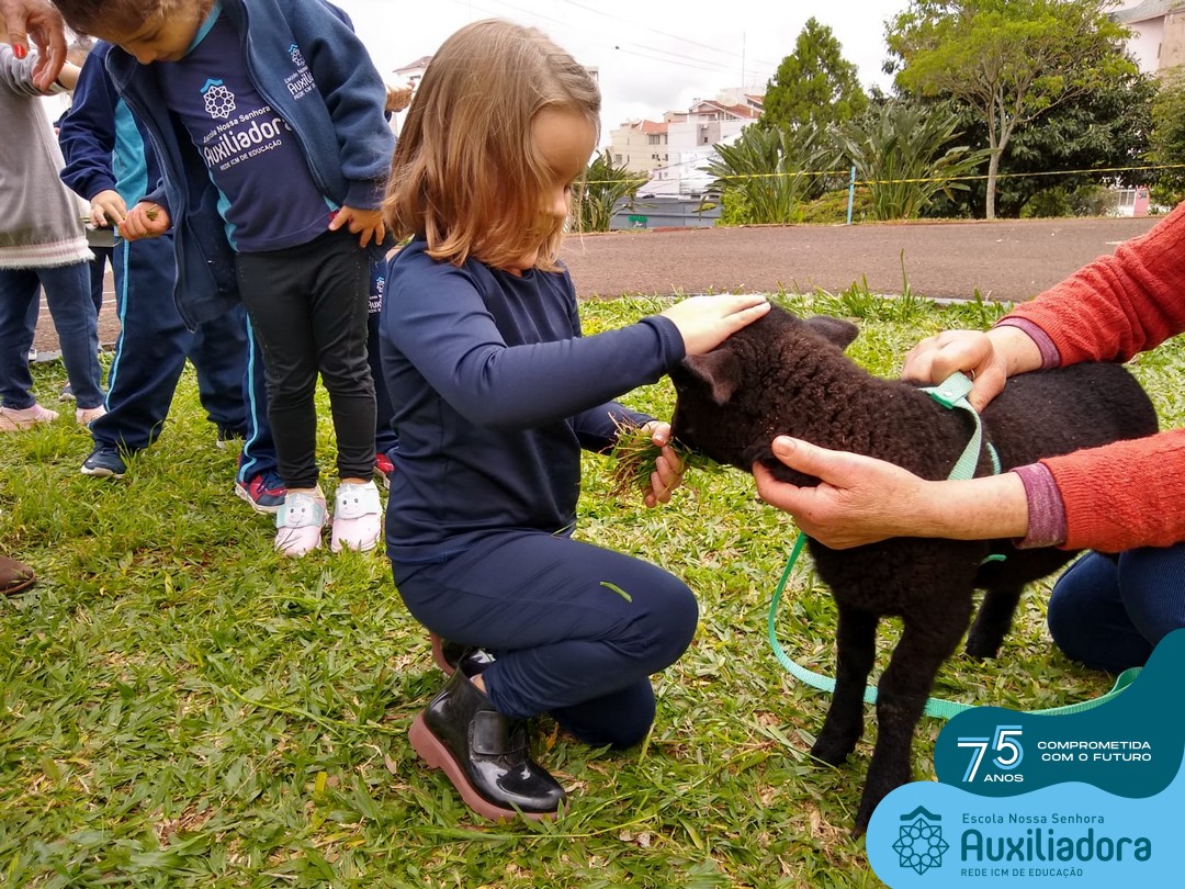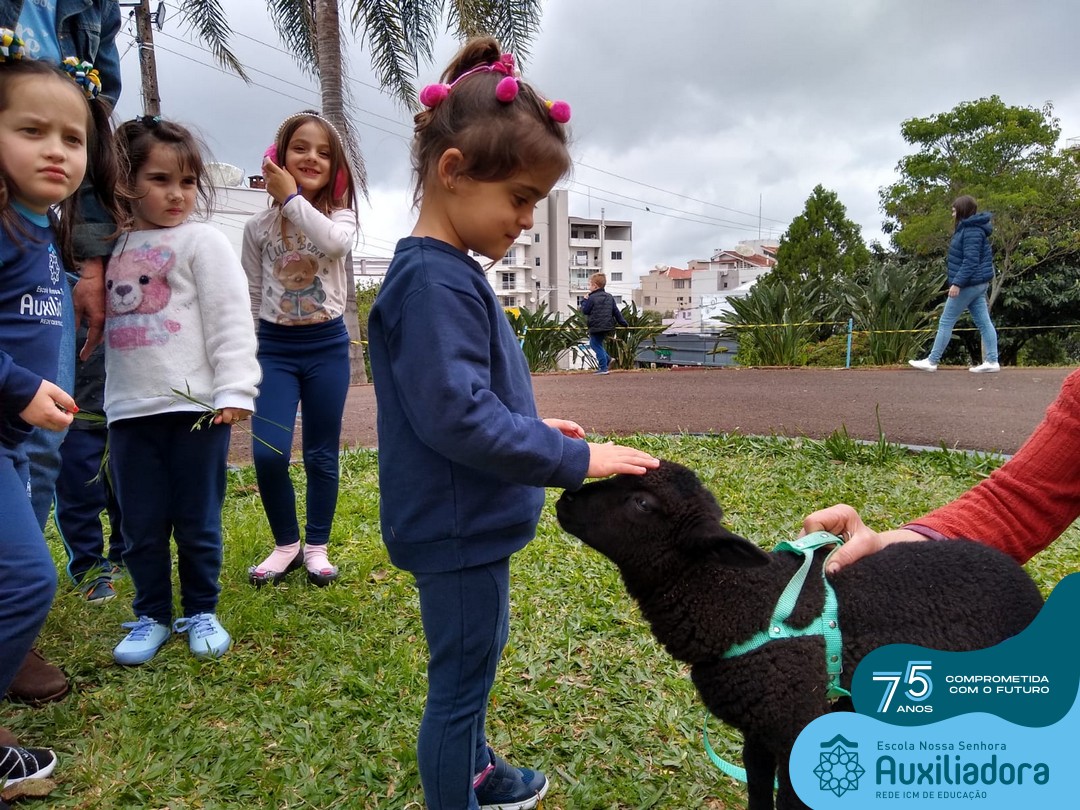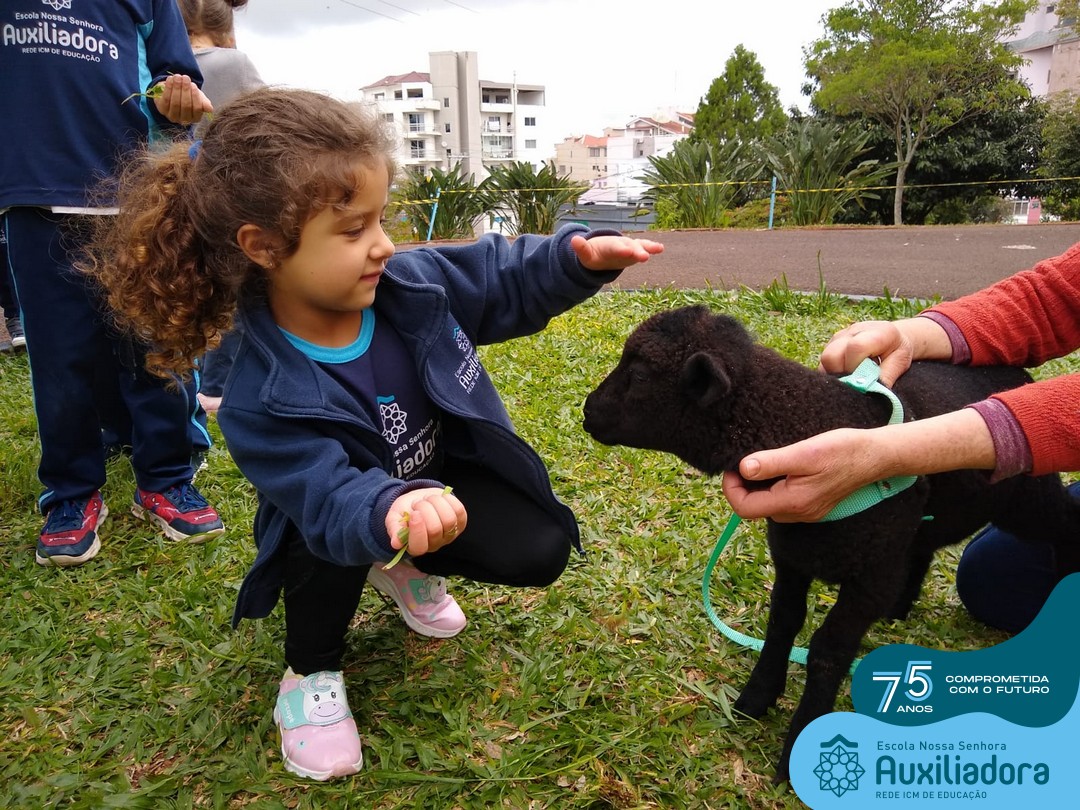 Os alunos do Pré 1 trabalharam a Parábola “A Ovelha Perdida” e tiveram a oportunidade de experienciar um lindo momento com uma ovelhinha. Puderam tocar, cuidar, dar carinho e atenção e compreender os ensinamentos da parábola em uma significativa experiência prática.