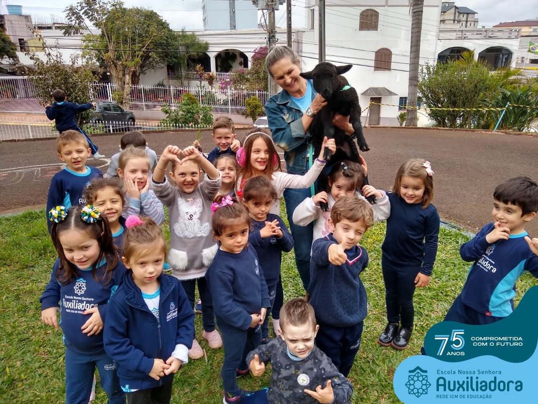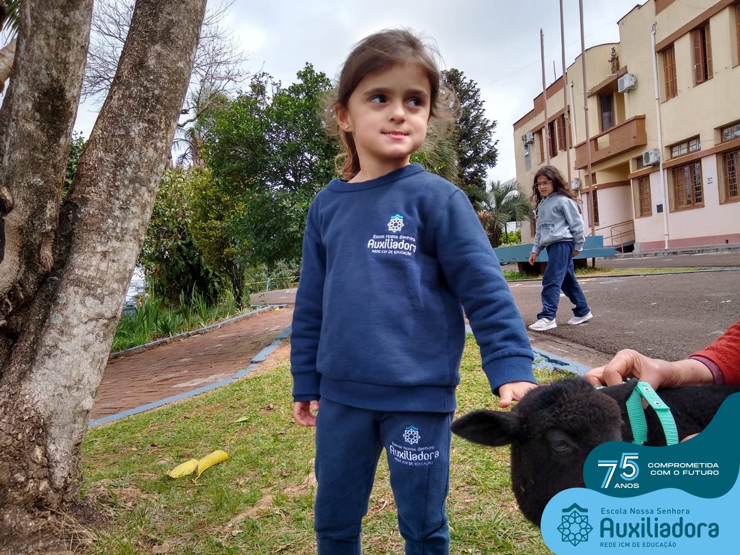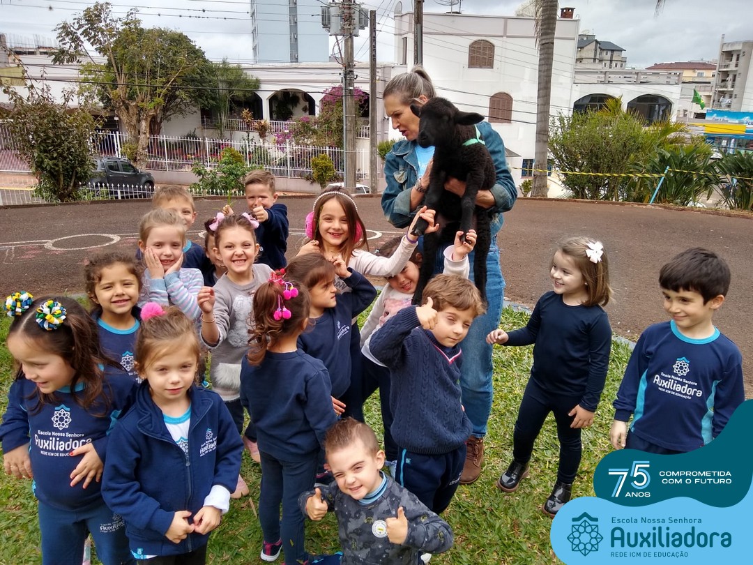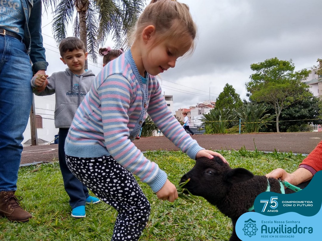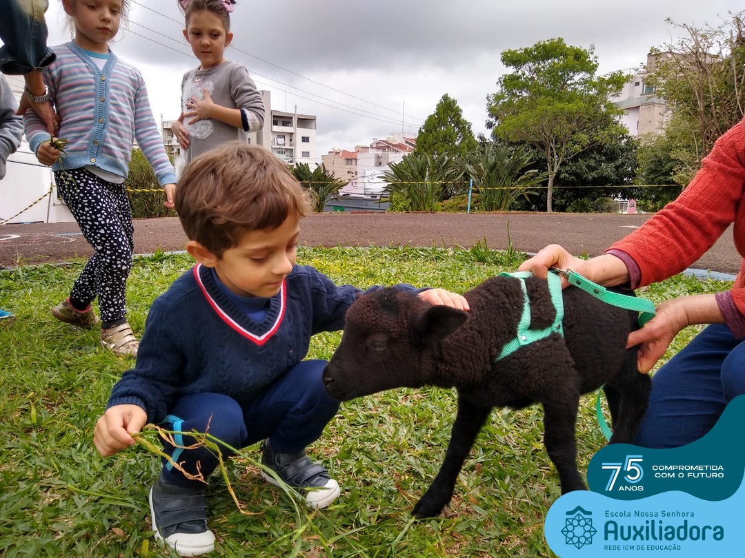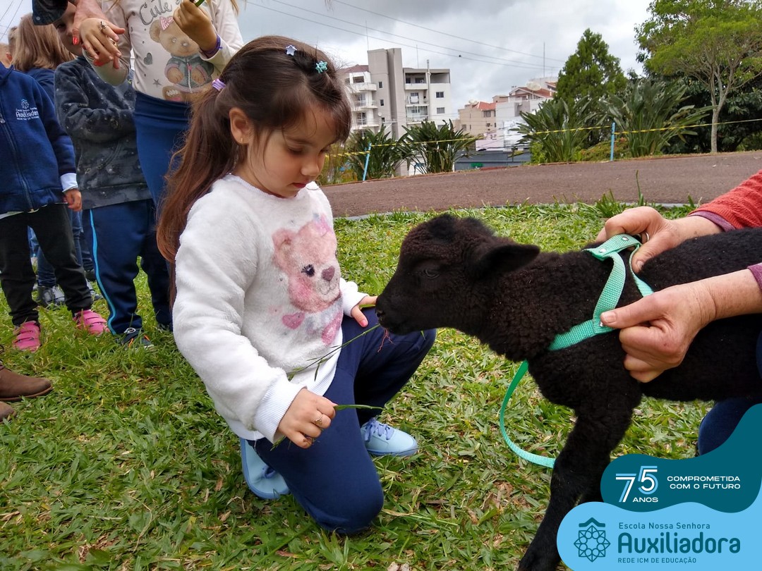 Os alunos do Pré 1 trabalharam a Parábola “A Ovelha Perdida” e tiveram a oportunidade de experienciar um lindo momento com uma ovelhinha. Puderam tocar, cuidar, dar carinho e atenção e compreender os ensinamentos da parábola em uma significativa experiência prática.
