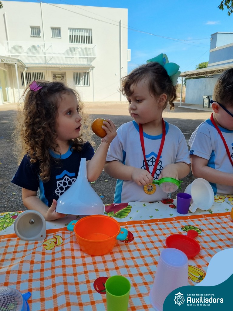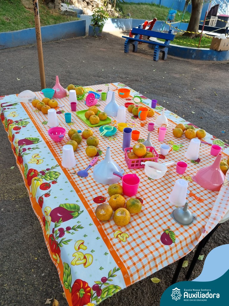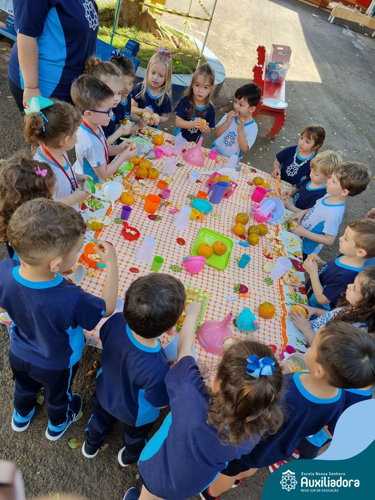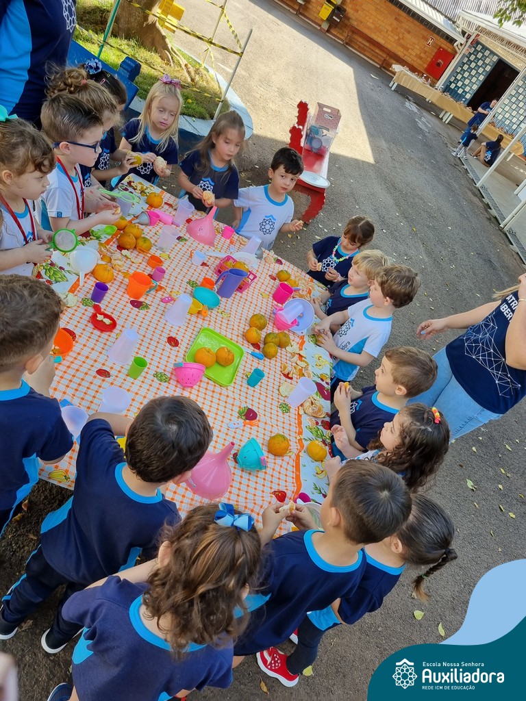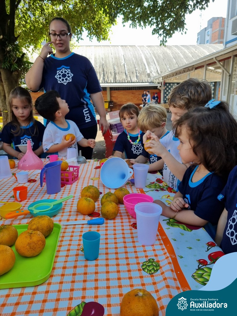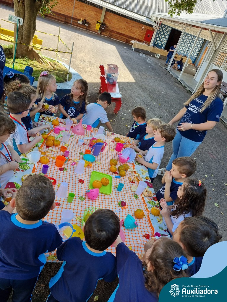 Nossas crianças aprimoraram a coordenação motora fina, aguçaram o sentido e exploraram a fruta bergamota, típica dessa época.