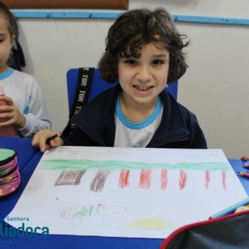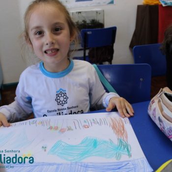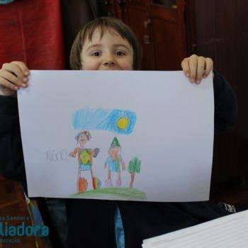 Produção artística de como foram as férias e cartinhas incentivadoras das famílias.