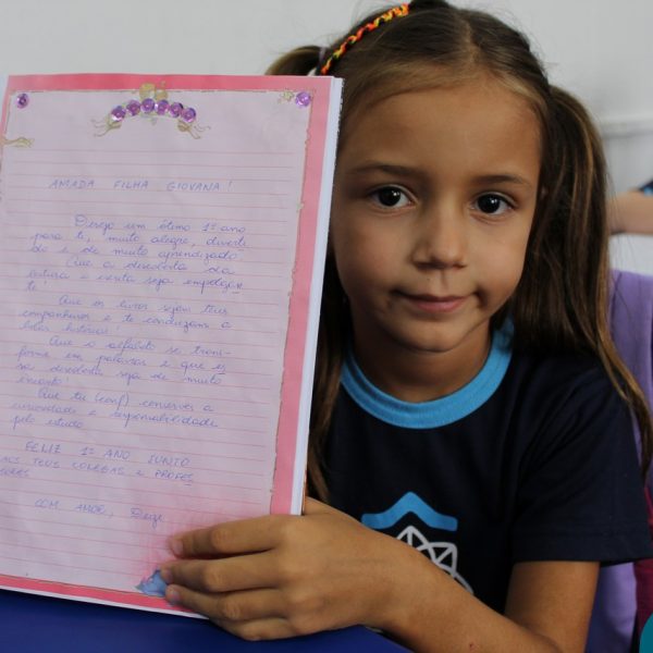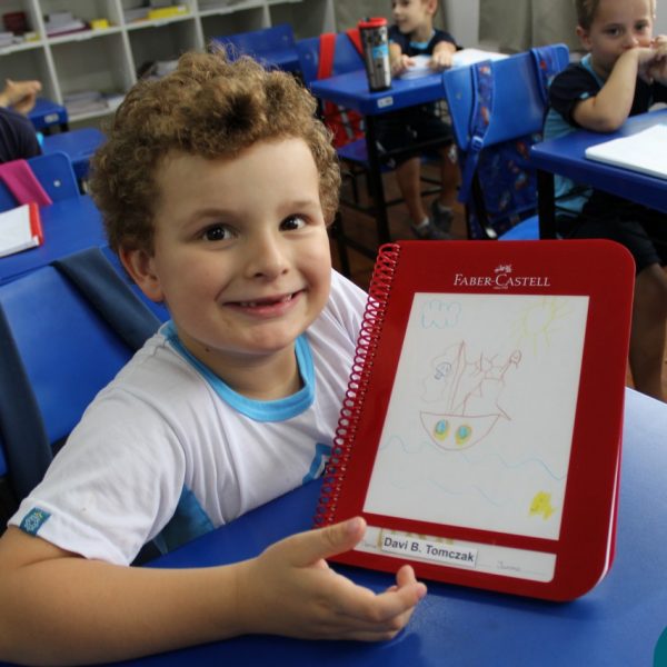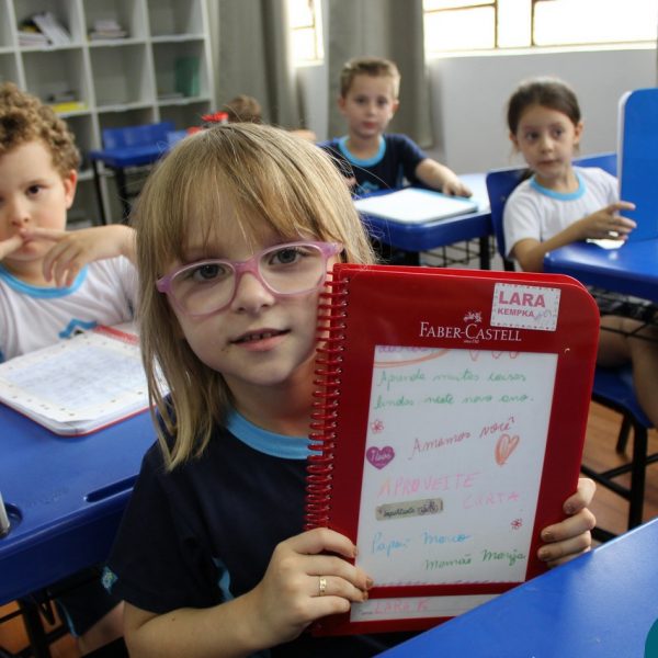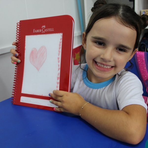 A atividade, intitulada “A festa do caderno” contou com diversas atividades, dentre elas, a caça ao tesouro, no qual as crianças embarcaram no desafio de desvendar o mistério do desaparecimento dos cadernos e ainda, a leitura da cartinha com recados e incentivos dos pais para os filhos, como forma de motivação para o início dessa etapa mágica na vida das crianças que é a alfabetização.