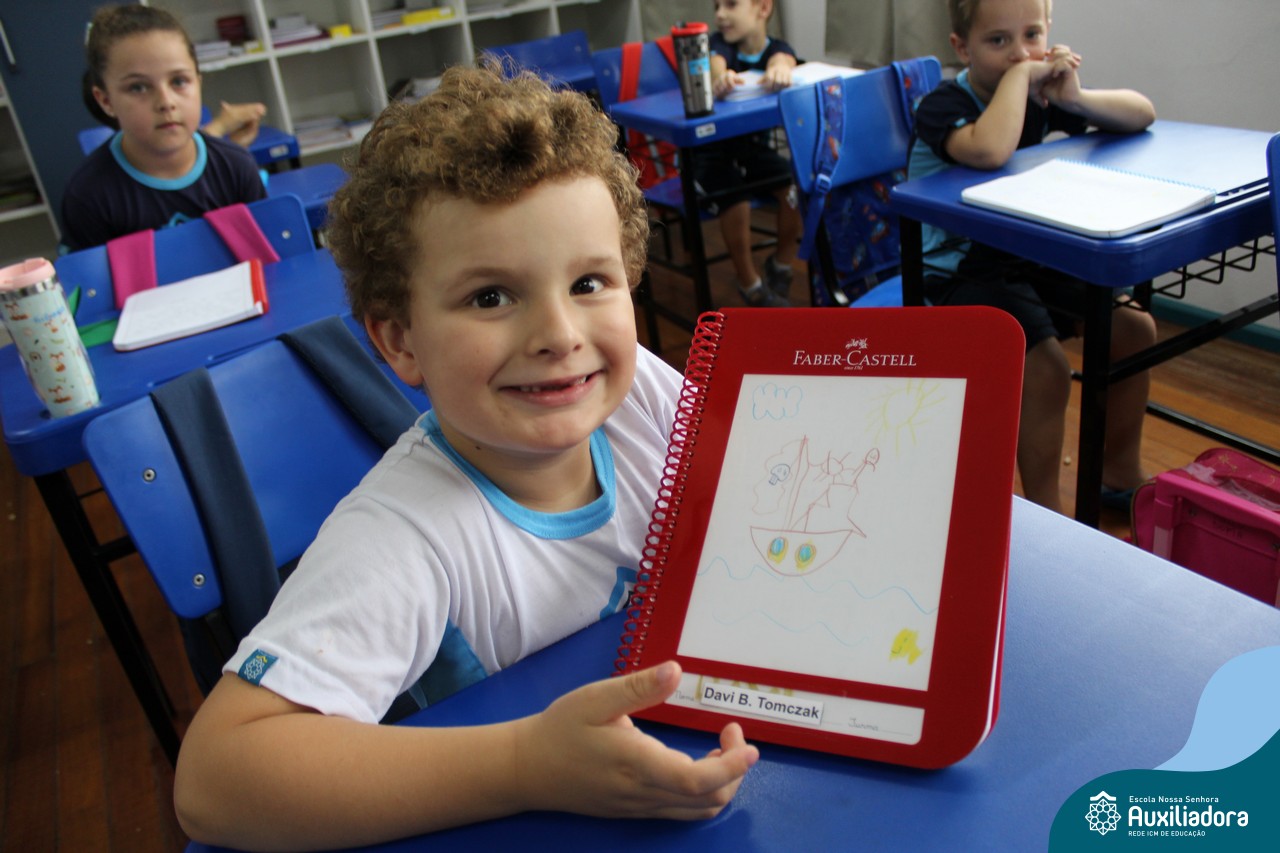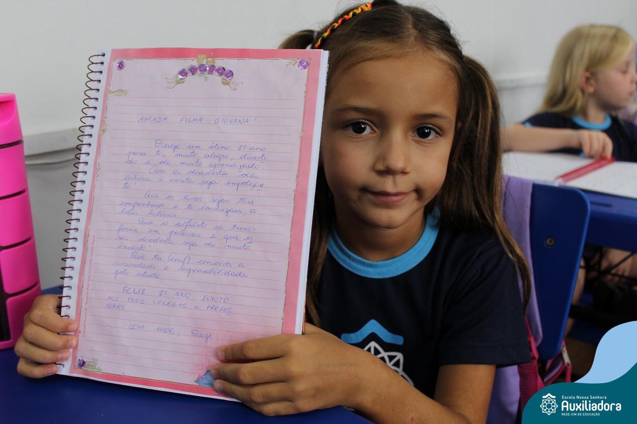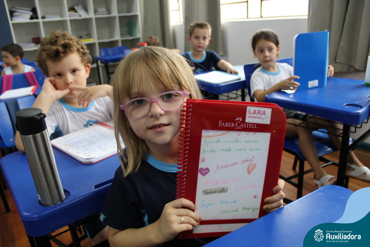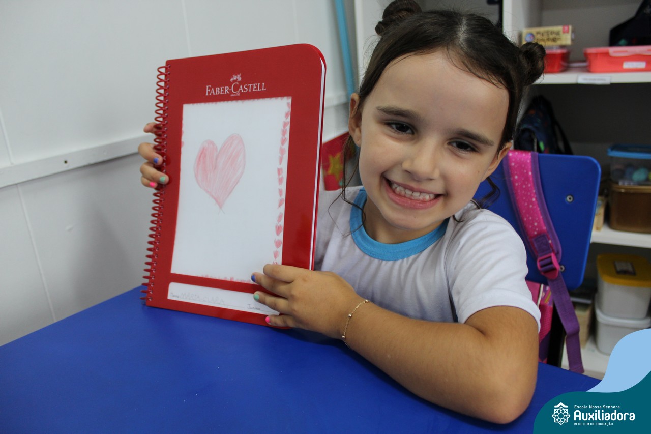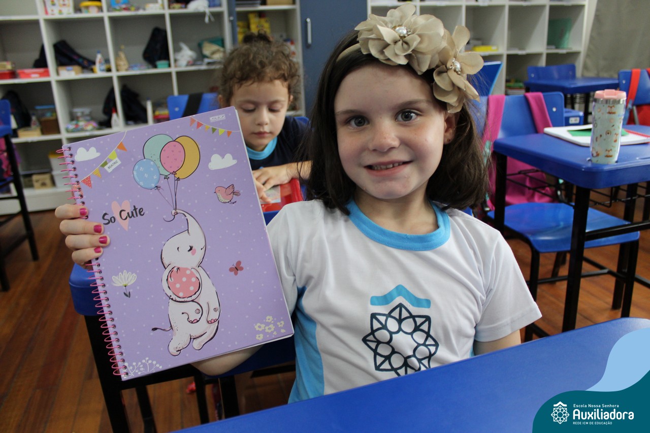 A atividade, intitulada “A festa do caderno” contou com diversas atividades, dentre elas, a caça ao tesouro, no qual as crianças embarcaram no desafio de desvendar o mistério do desaparecimento dos cadernos e ainda, a leitura da cartinha com recados e incentivos dos pais para os filhos, como forma de motivação para o início dessa etapa mágica na vida das crianças que é a alfabetização.