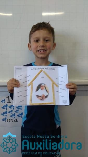 ❣️ Ação em comemoração ao Bicentenário de Bárbara Maix. Os alunos dos primeiros anos confeccionaram um Santuário Lar de Bárbara Maix para permanecer em oração e vigília no aconchego de seus lares. ✅ Virtudes de Bárbara: #Justiça #Fé #Fortaleza #Temperança #Prudência #Esperança #Caridade. 👩🏫 Profe Andréia.