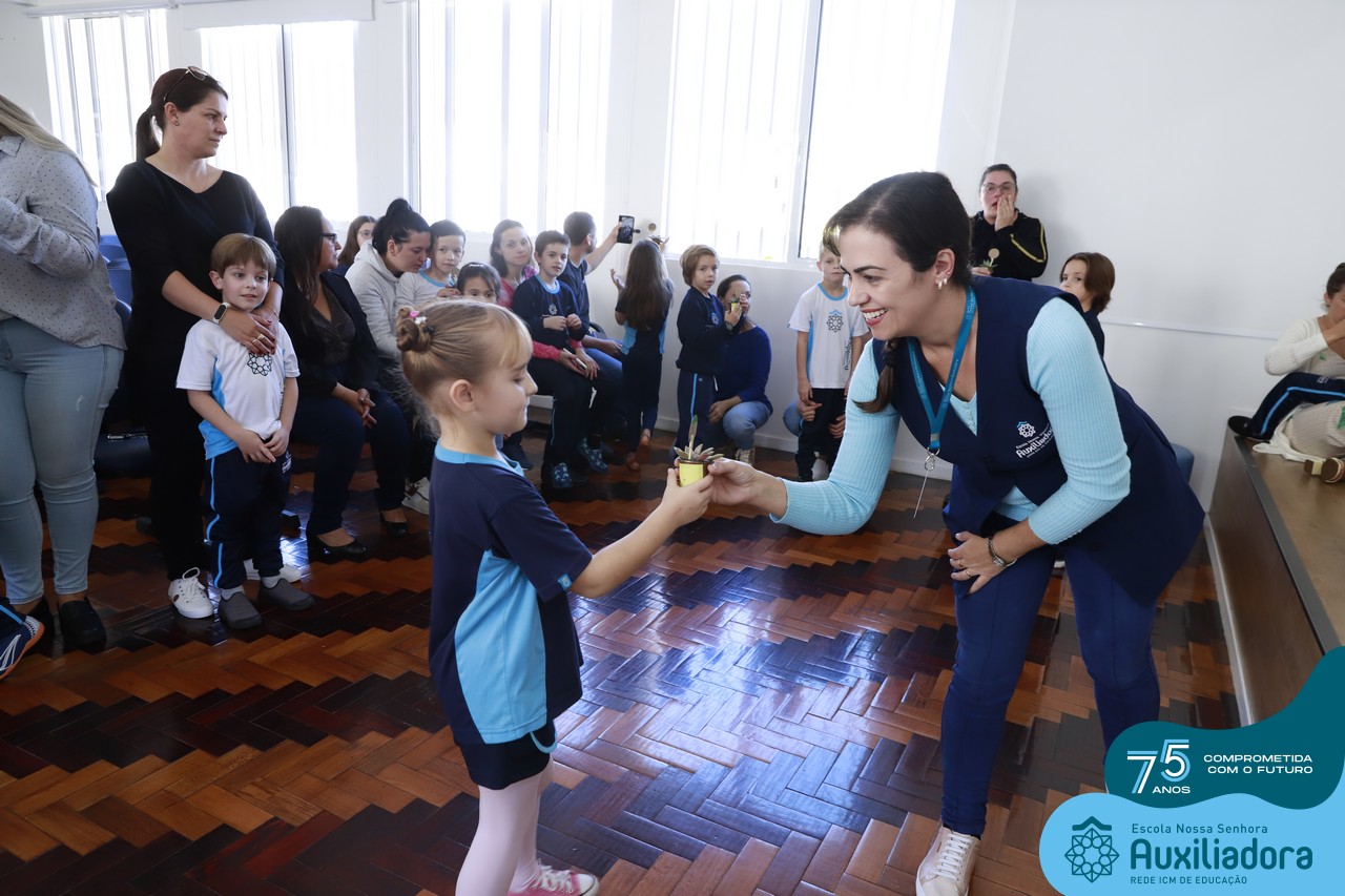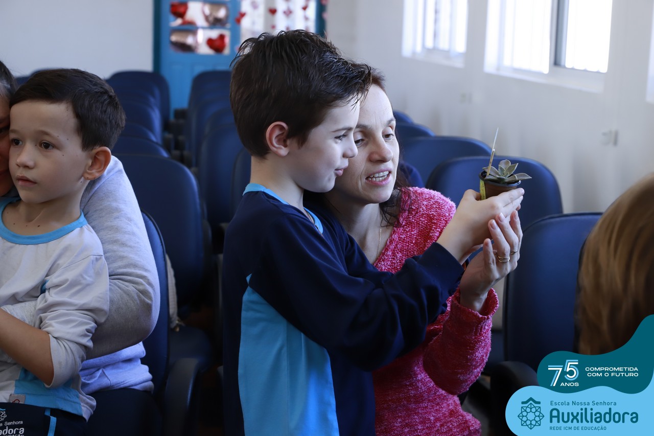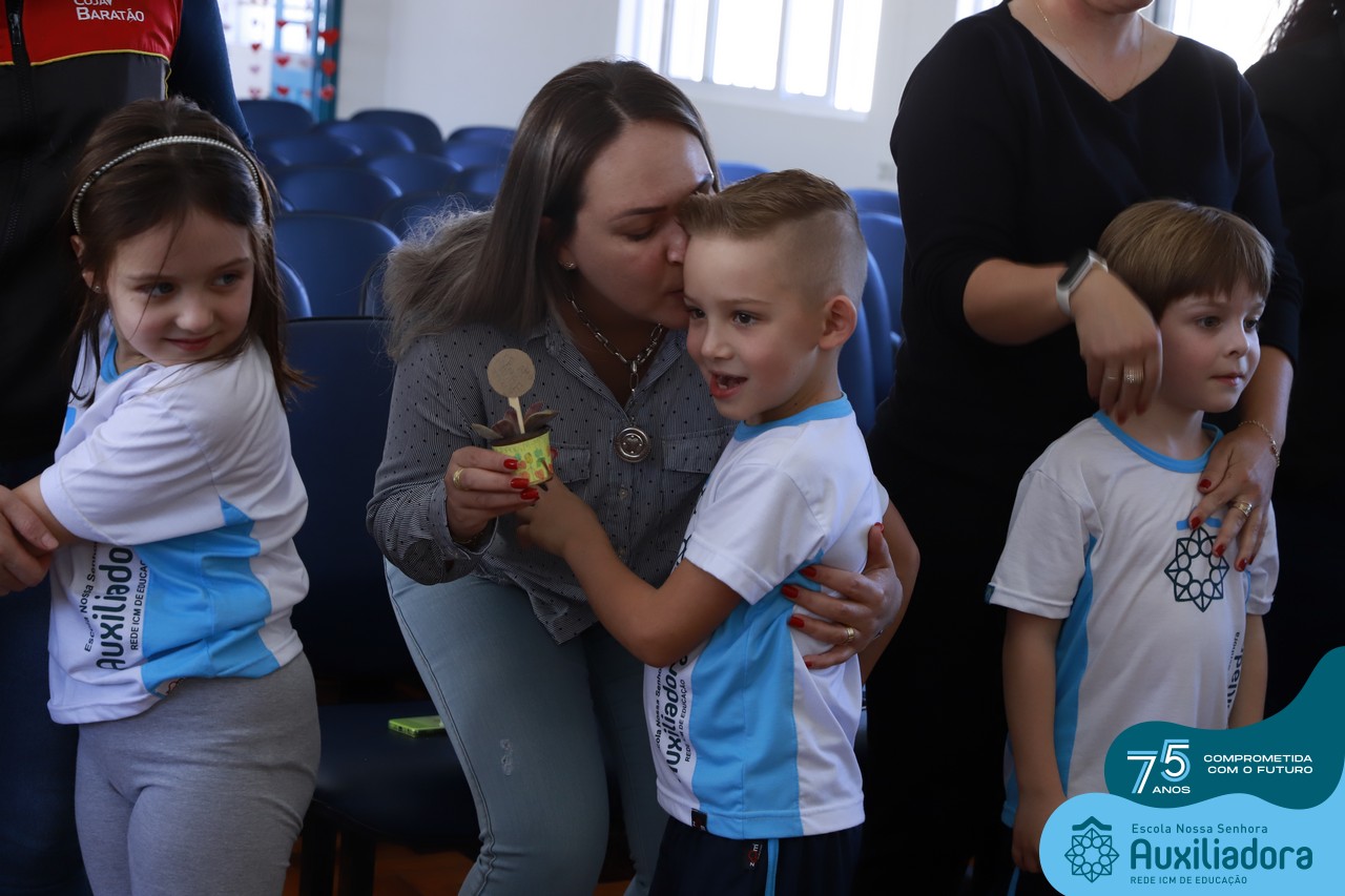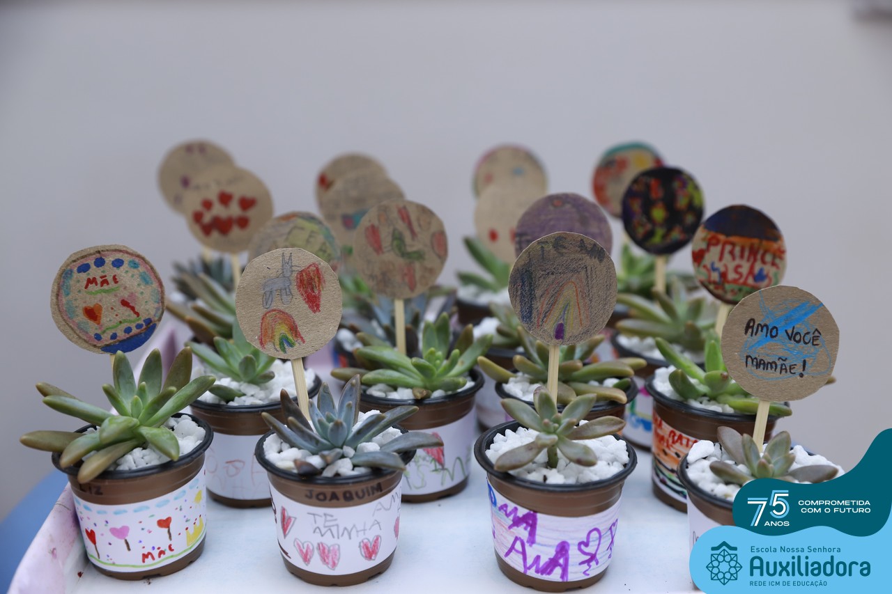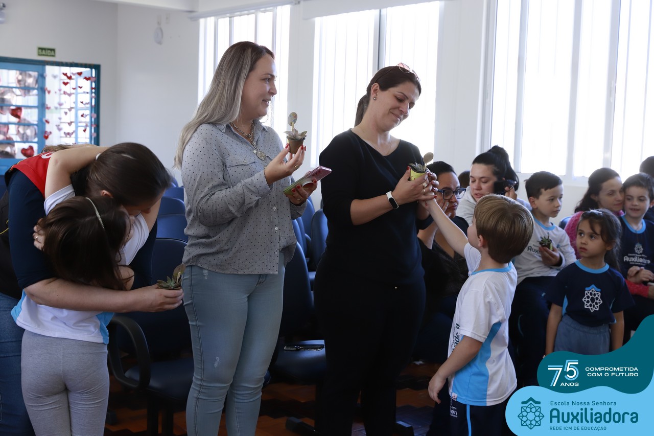 Foi um momento lindo e emocionante. Após presentearam suas mamães com lindas flores plantadas por eles. 😊