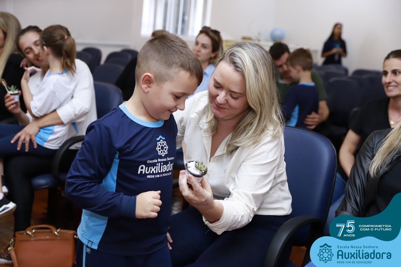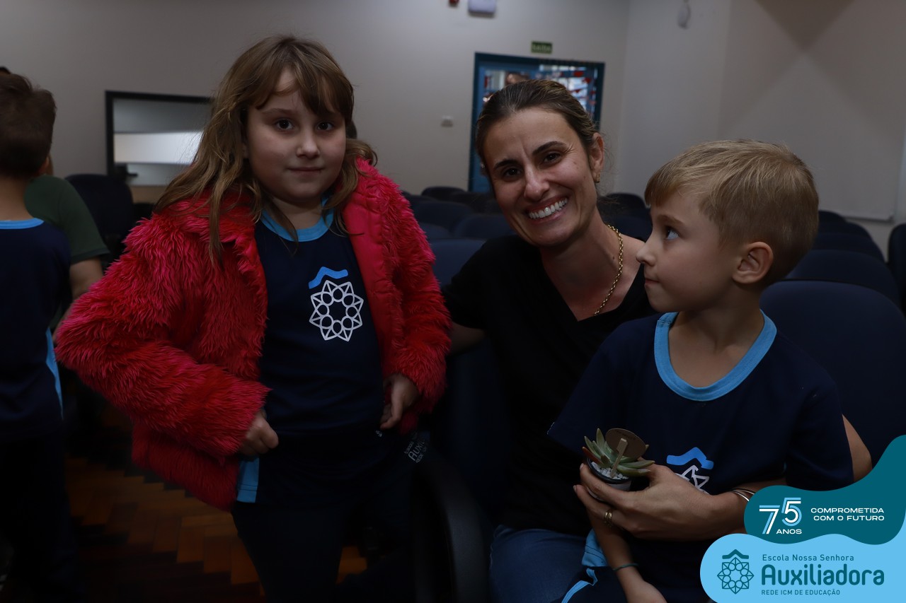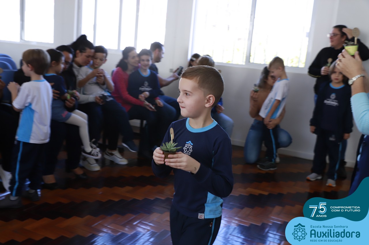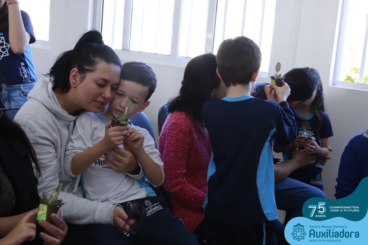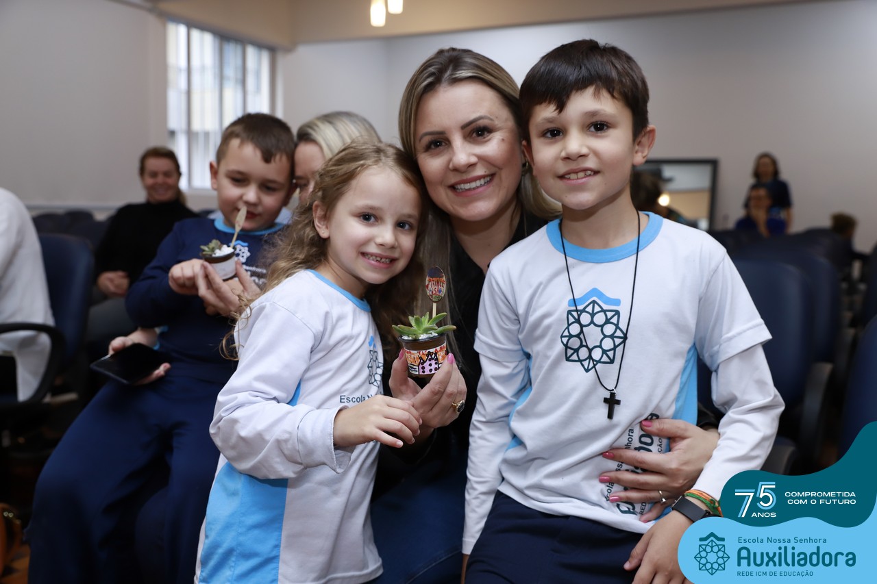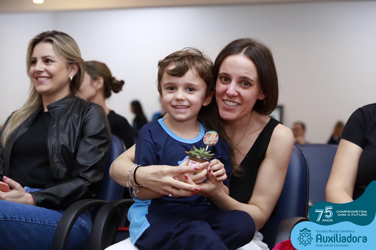 Foi um momento lindo e emocionante. Após presentearam suas mamães com lindas flores plantadas por eles. 😊