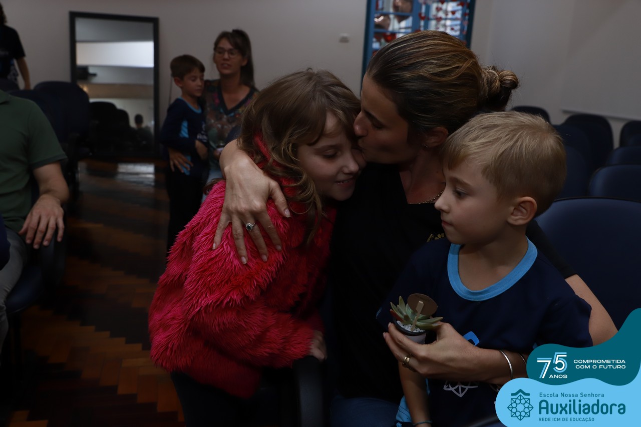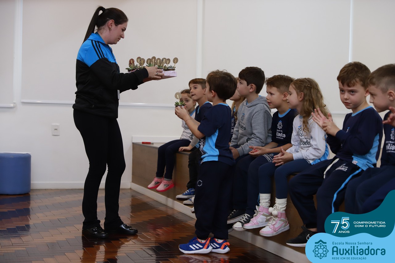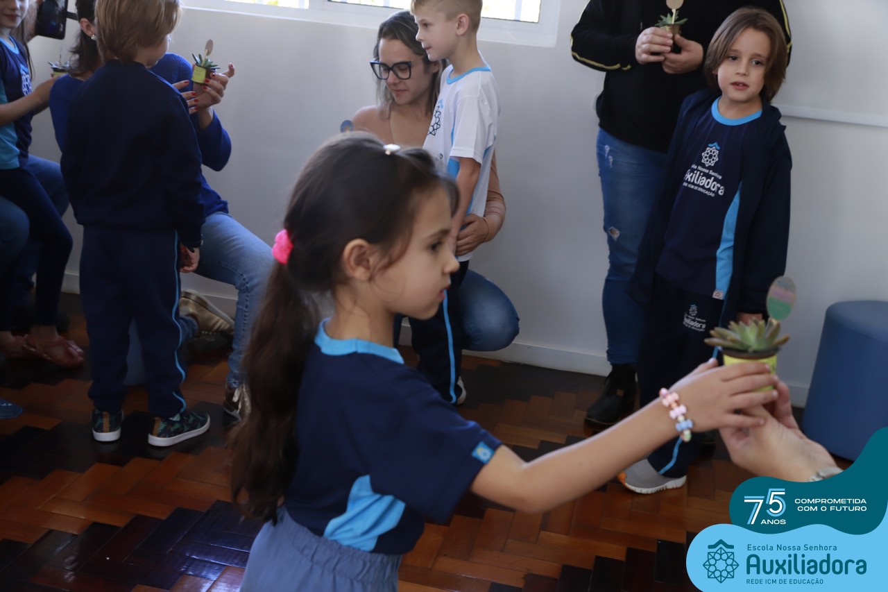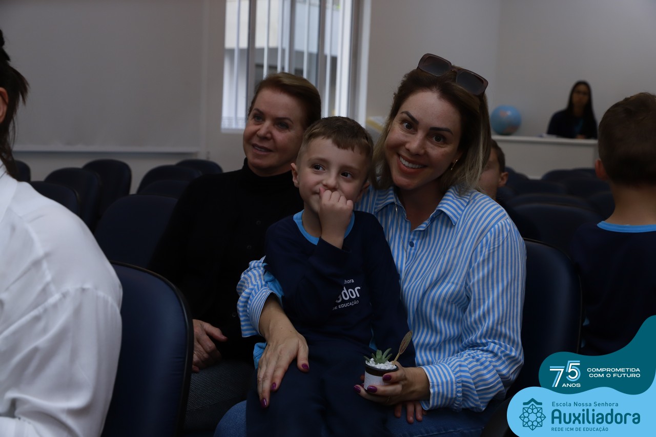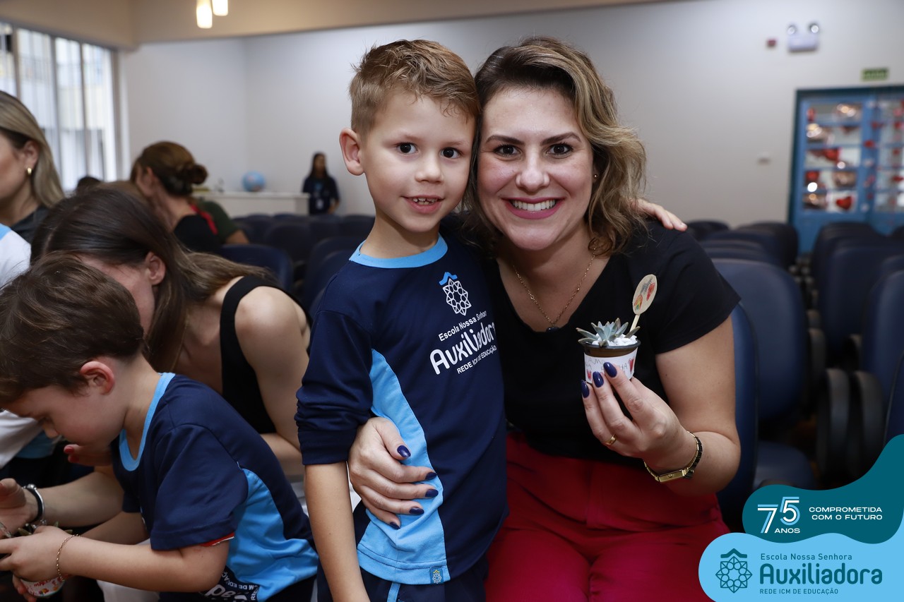 Foi um momento lindo e emocionante. Após presentearam suas mamães com lindas flores plantadas por eles. 😊