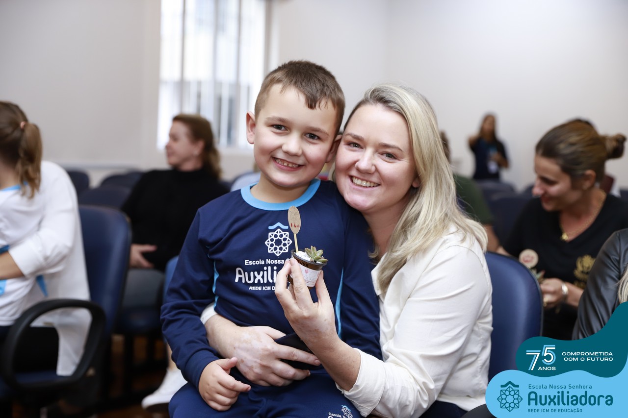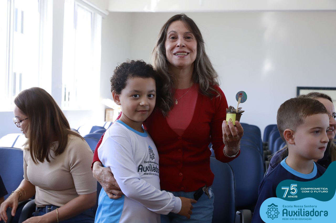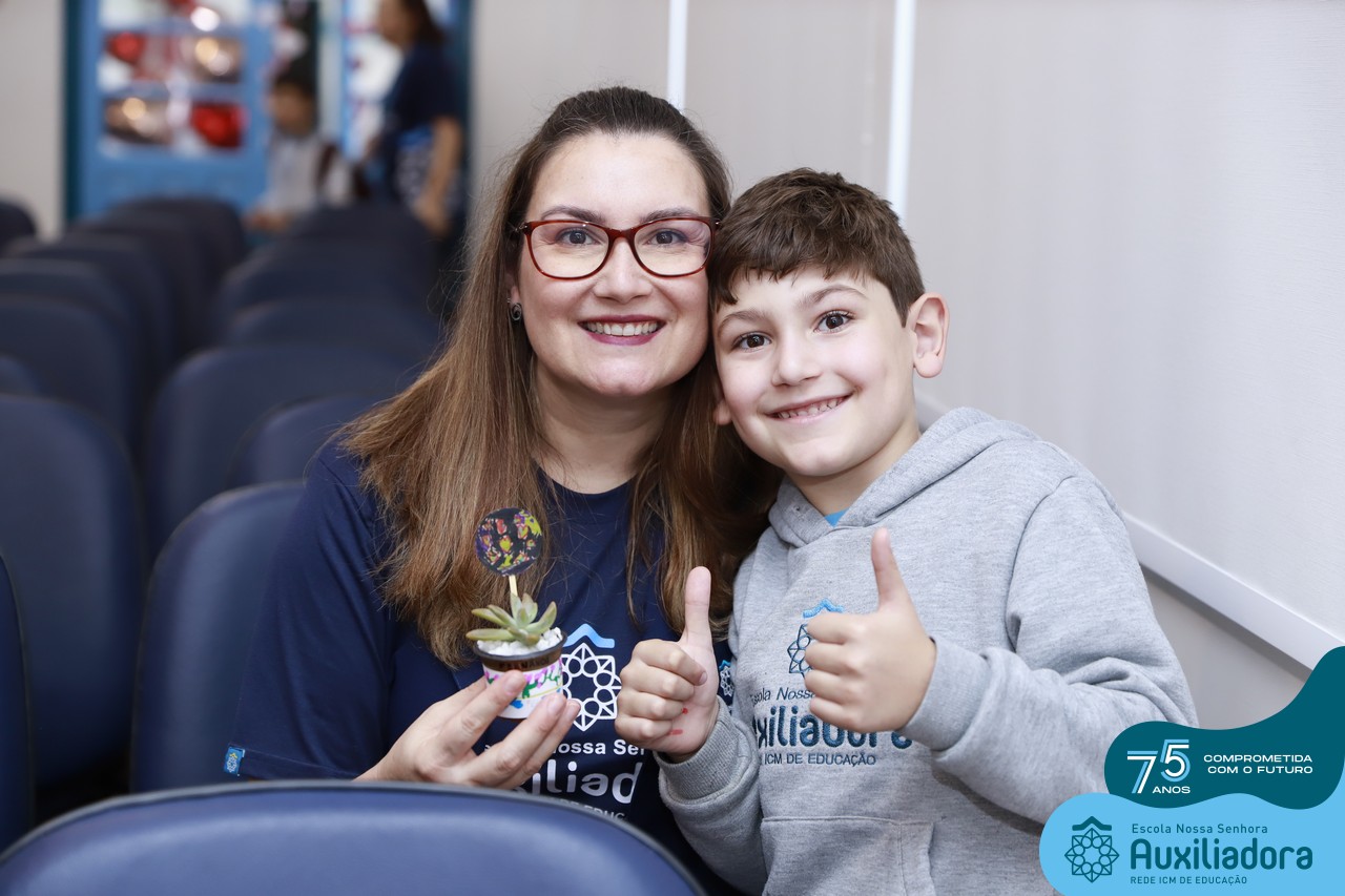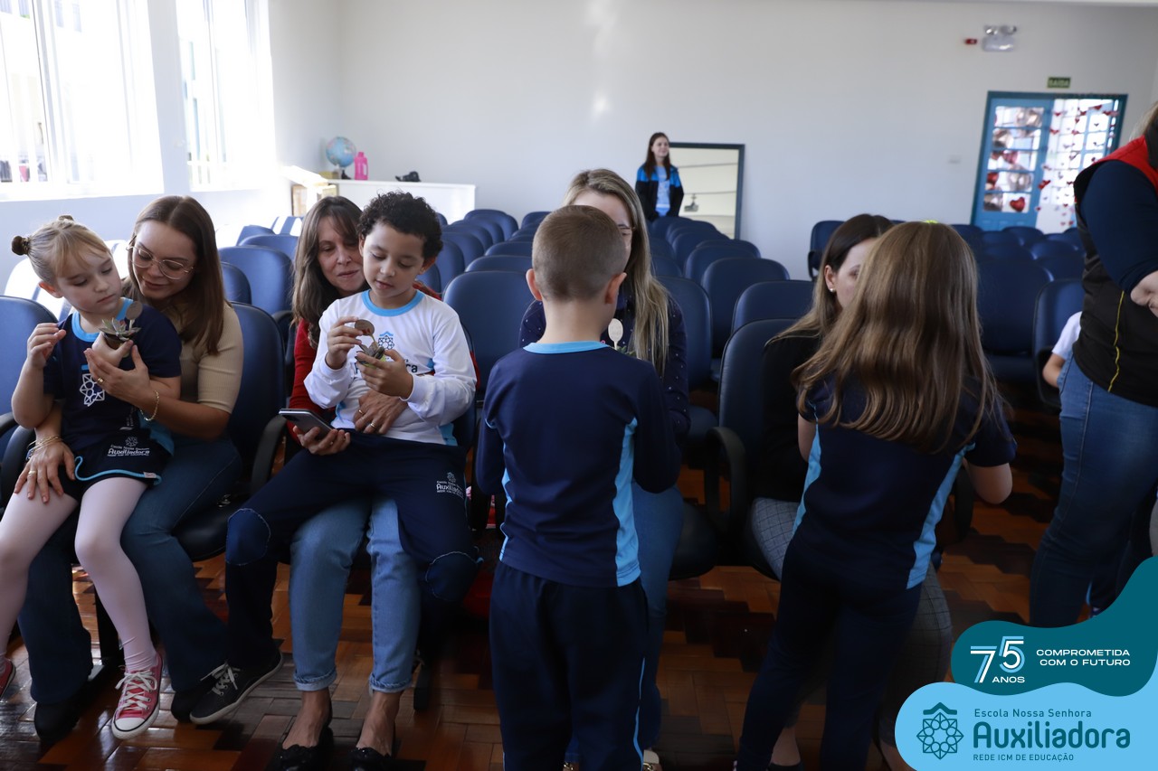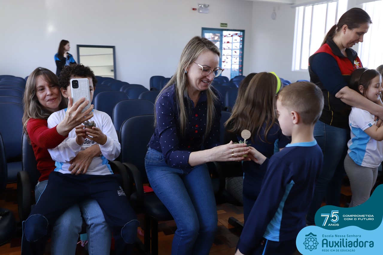 Foi um momento lindo e emocionante. Após presentearam suas mamães com lindas flores plantadas por eles. 😊