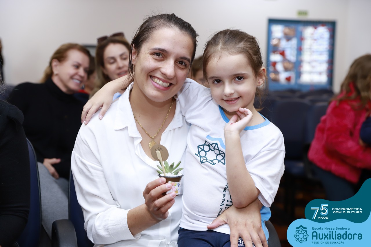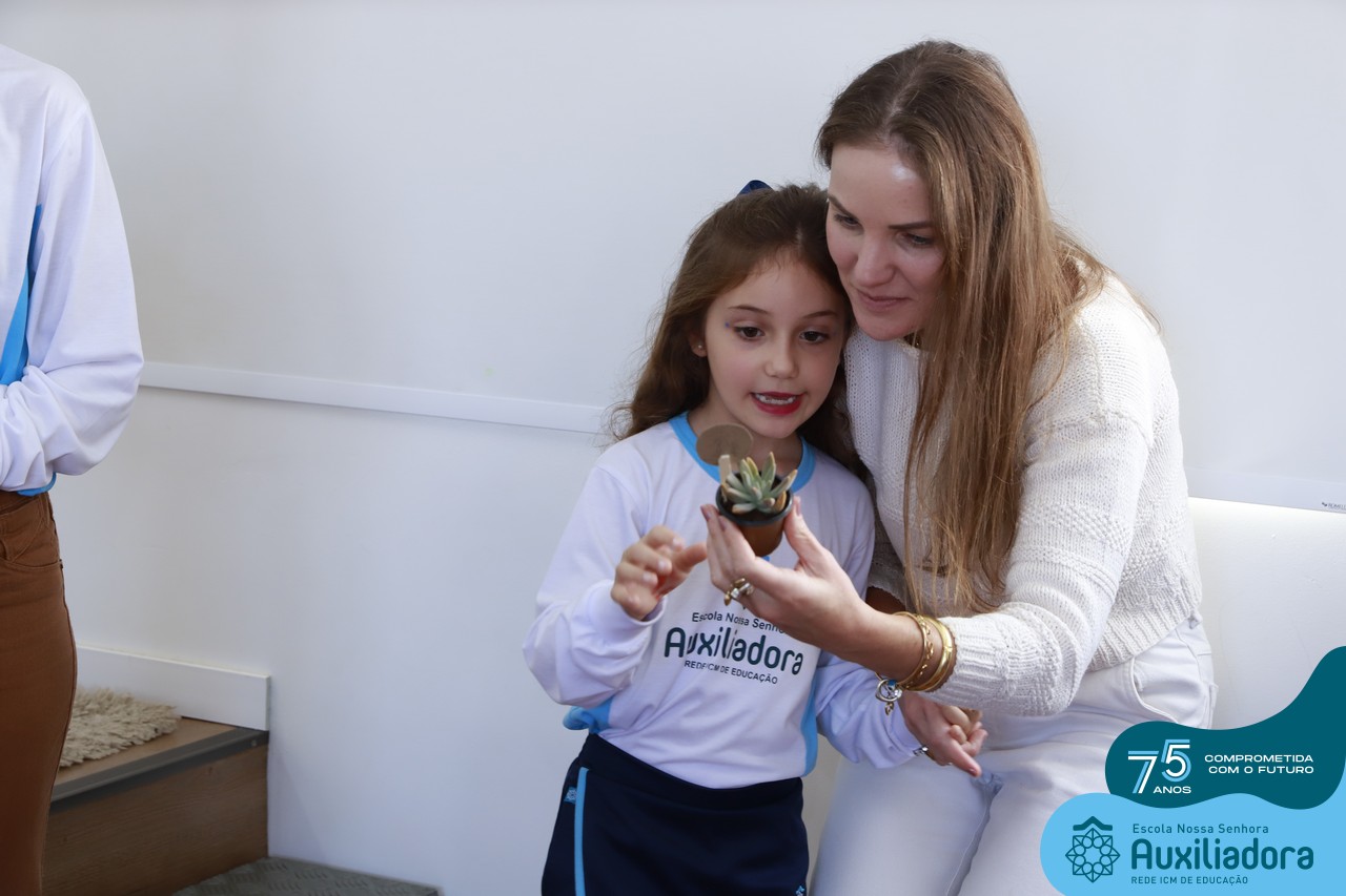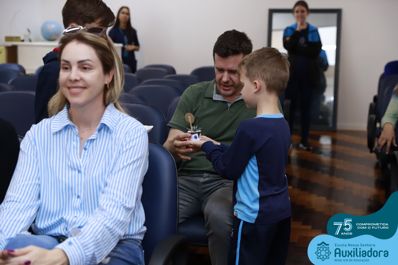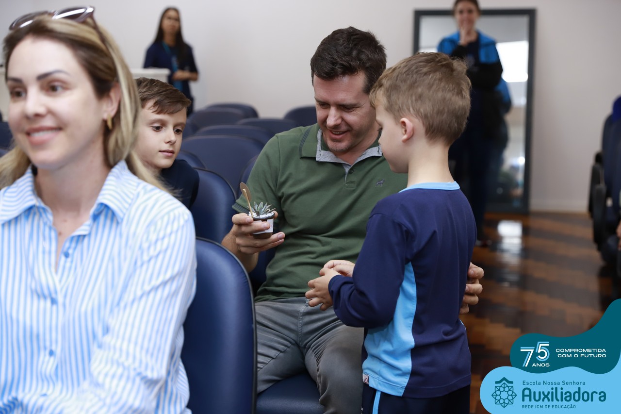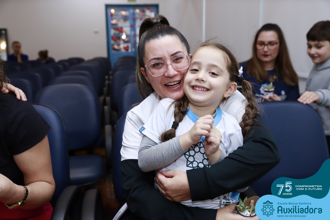 Foi um momento lindo e emocionante. Após presentearam suas mamães com lindas flores plantadas por eles. 😊