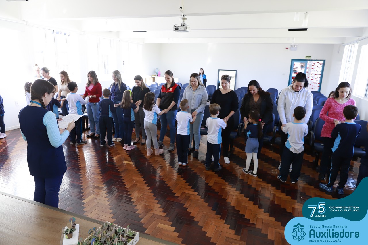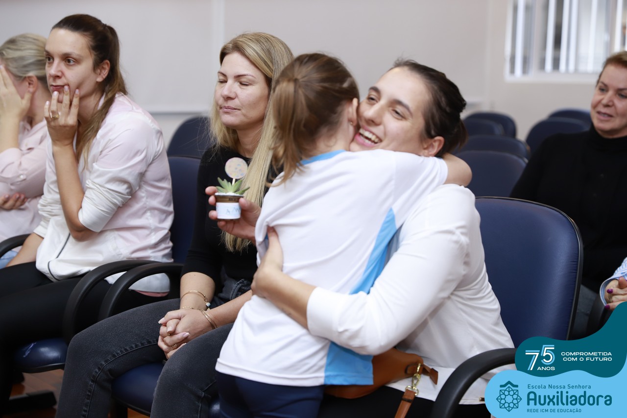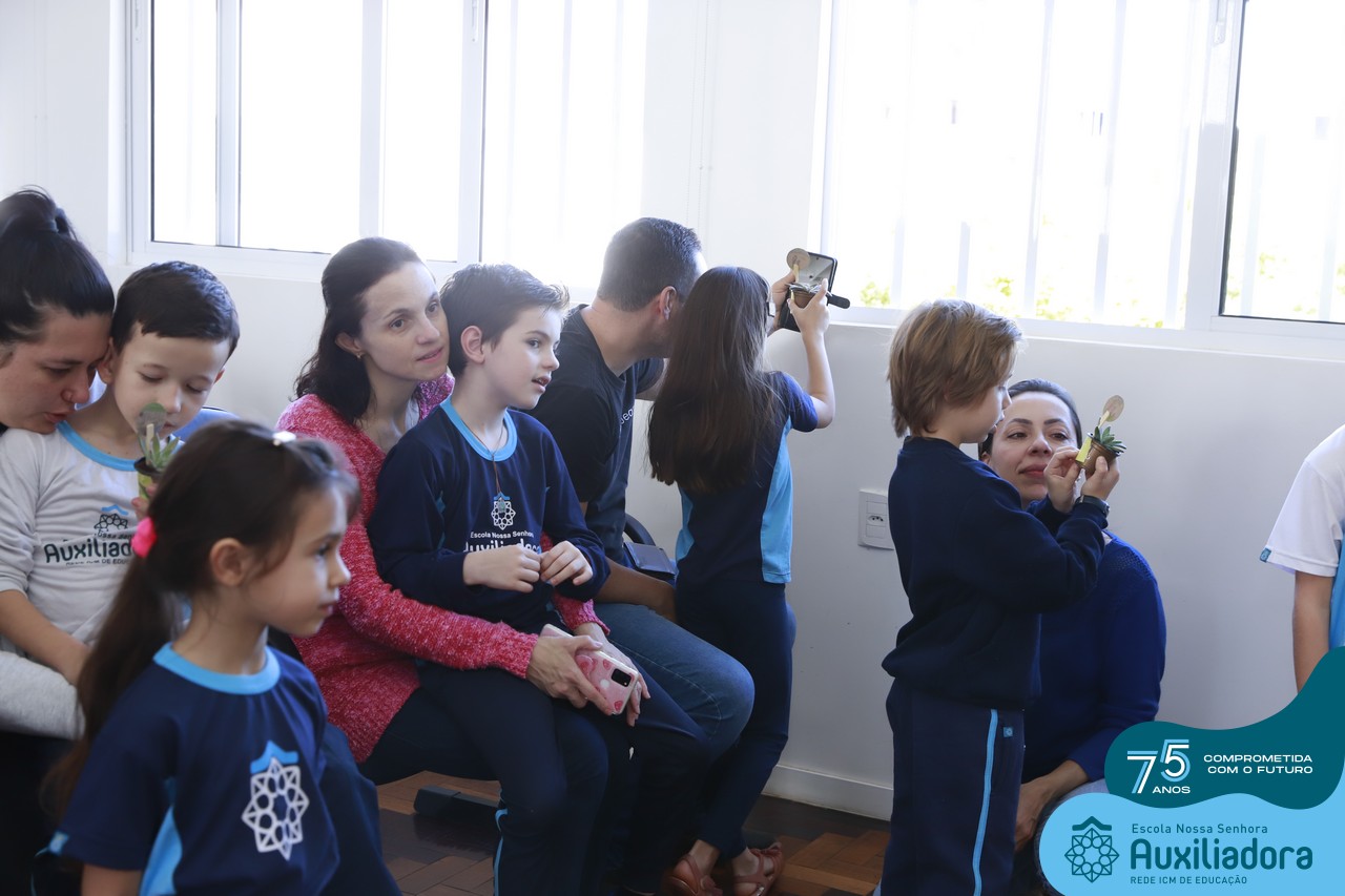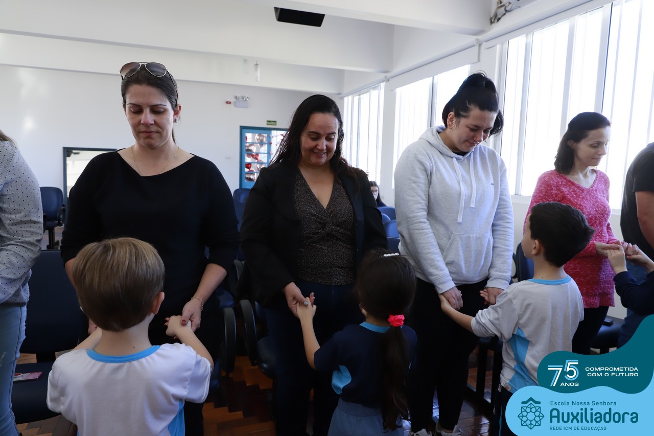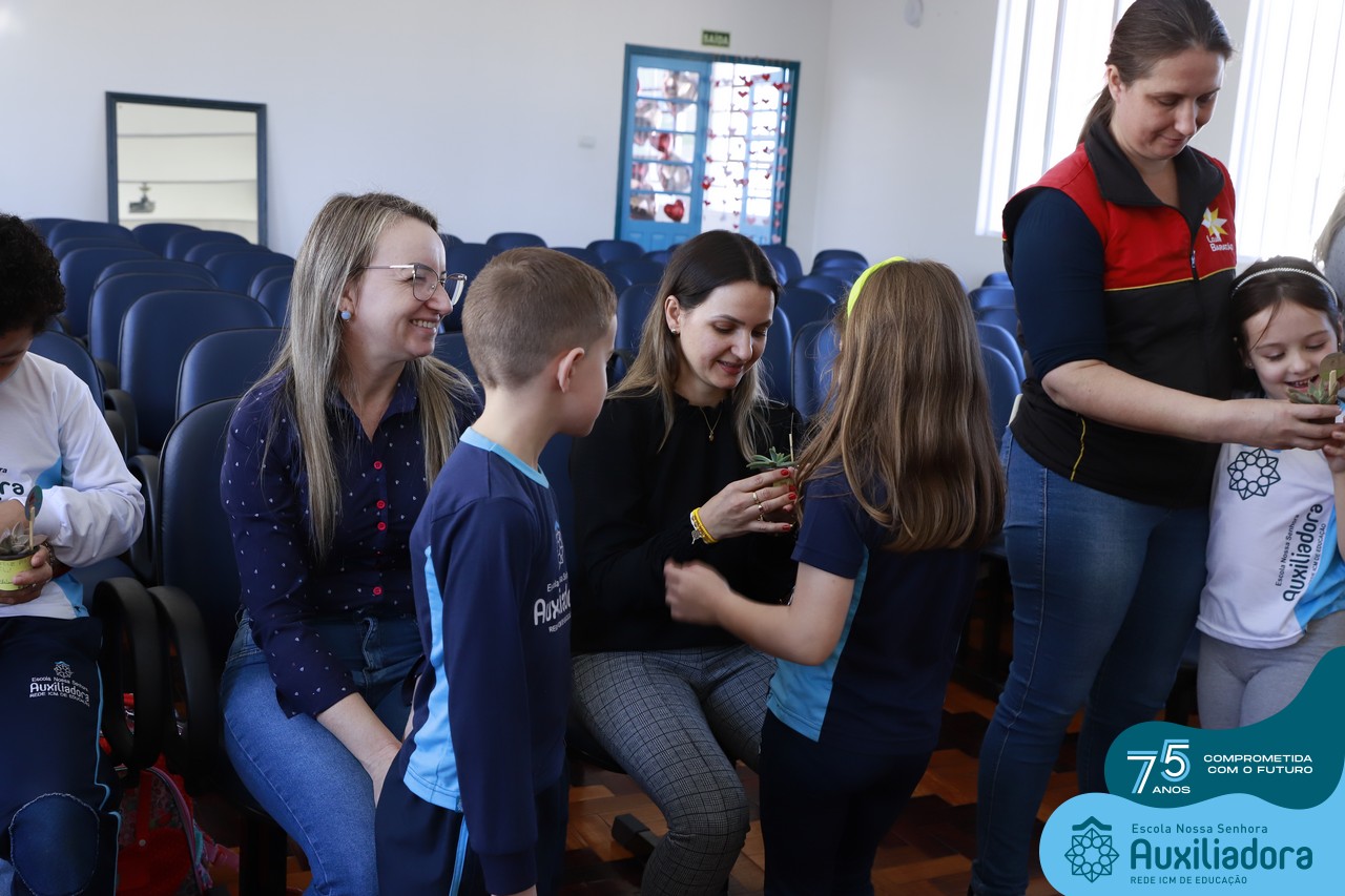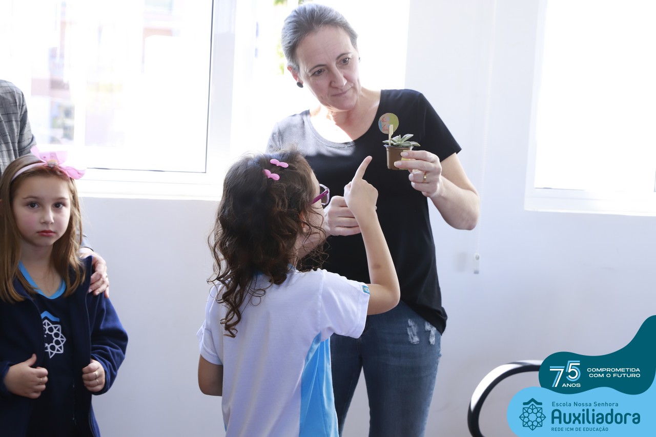 Foi um momento lindo e emocionante. Após presentearam suas mamães com lindas flores plantadas por eles. 😊