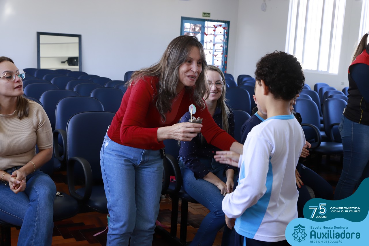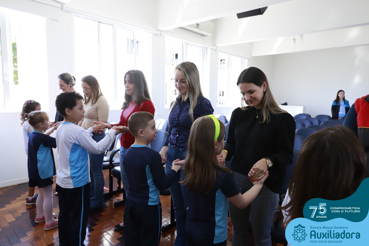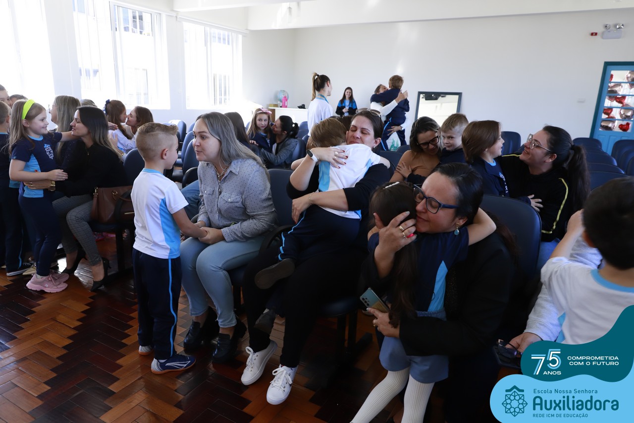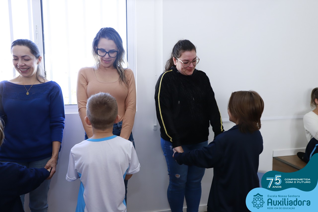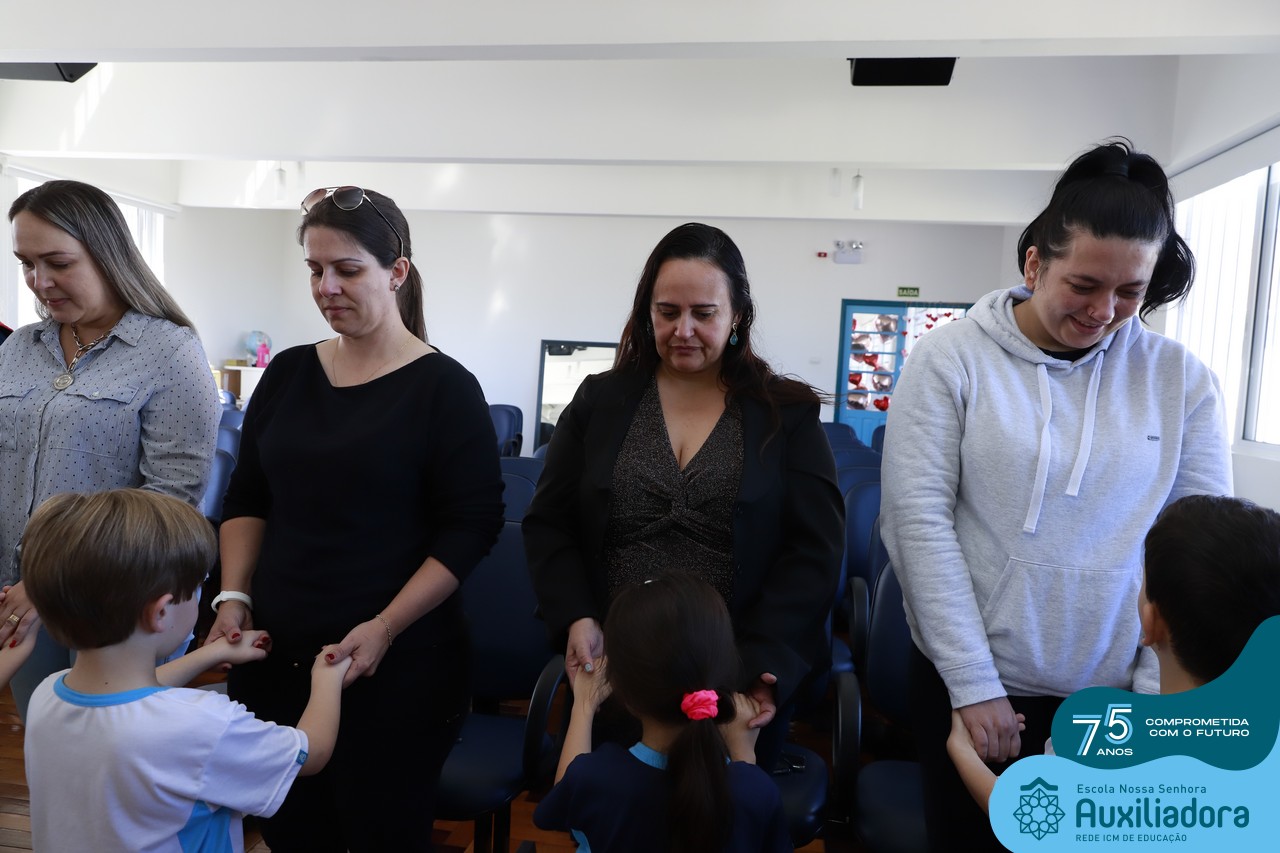 Foi um momento lindo e emocionante. Após presentearam suas mamães com lindas flores plantadas por eles. 😊