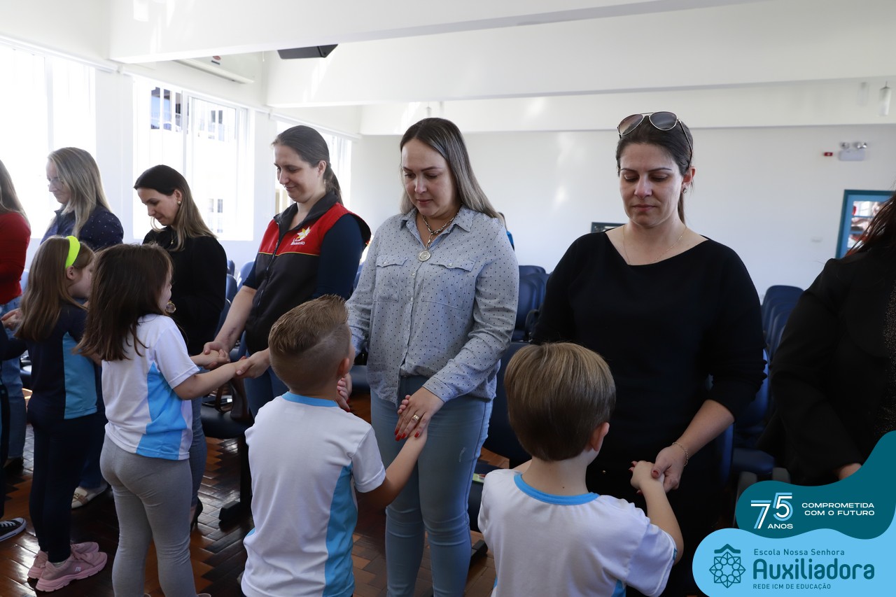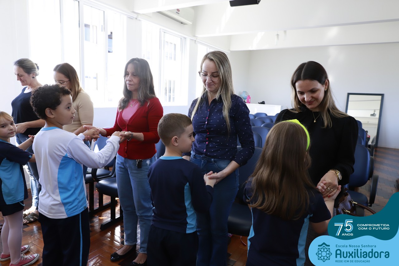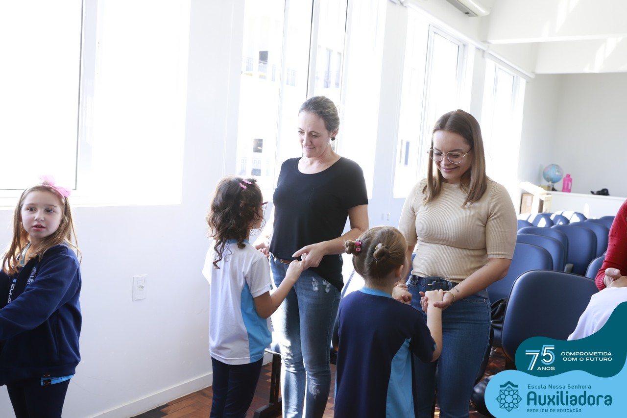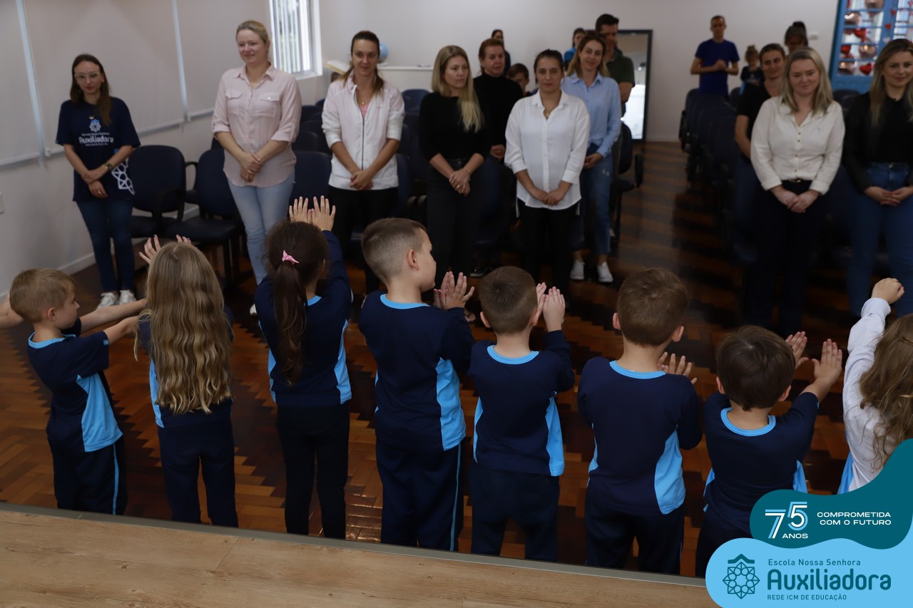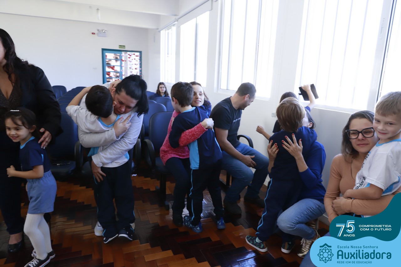 Foi um momento lindo e emocionante. Após presentearam suas mamães com lindas flores plantadas por eles. 😊
