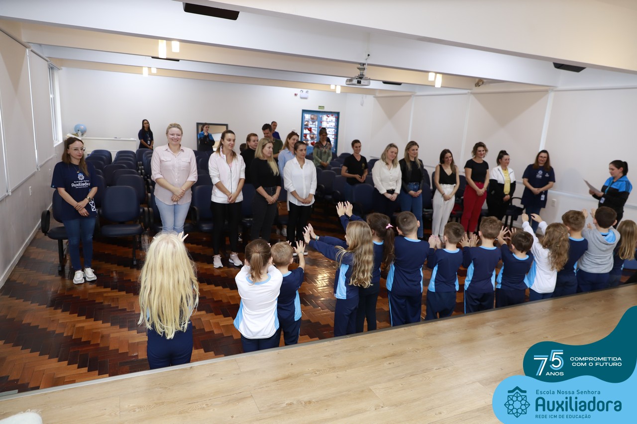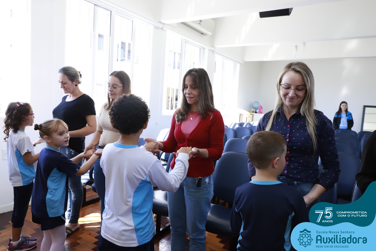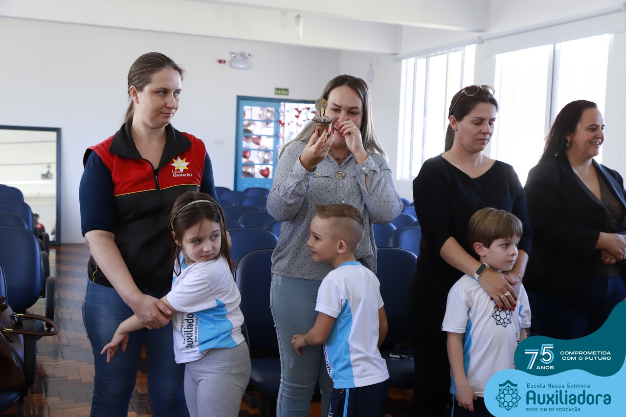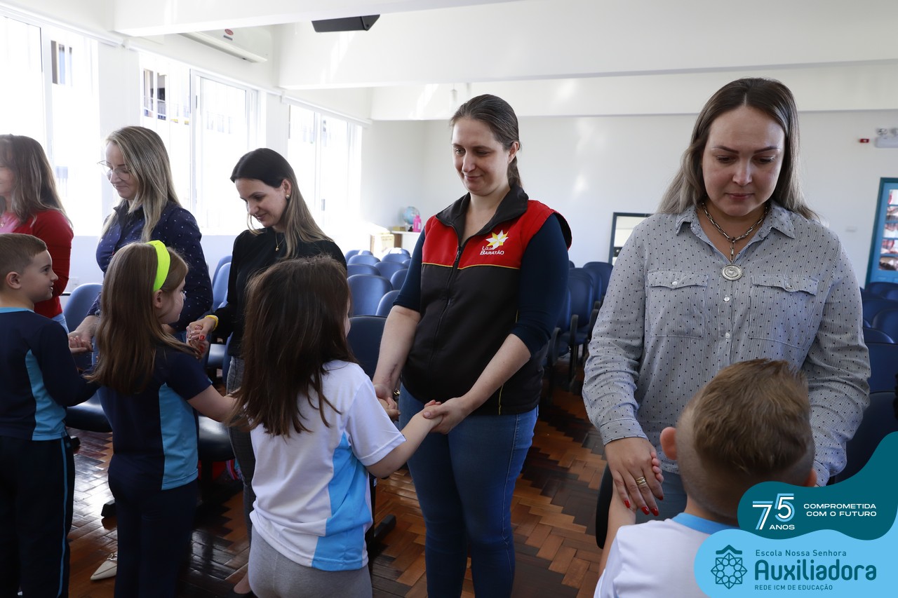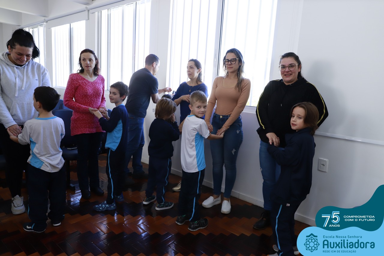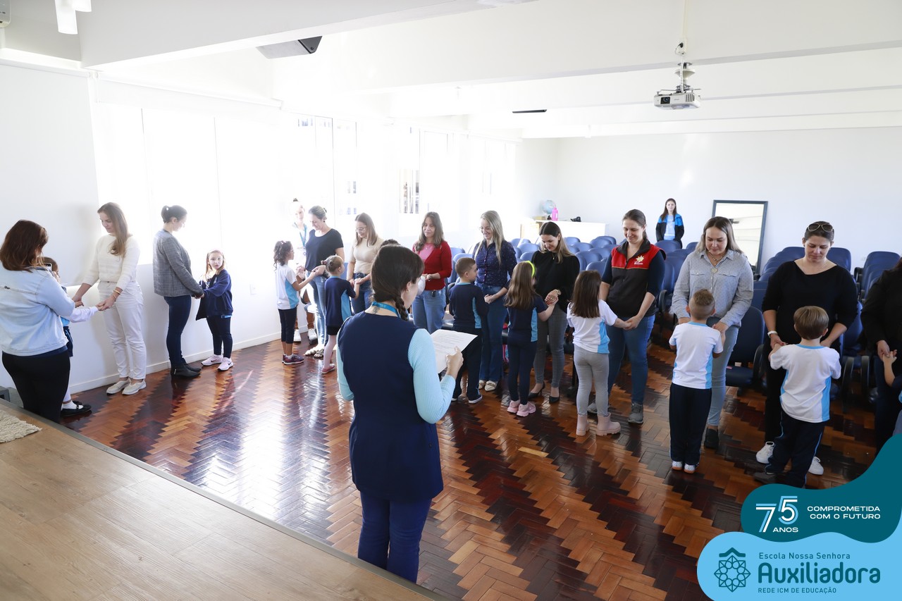 Foi um momento lindo e emocionante. Após presentearam suas mamães com lindas flores plantadas por eles. 😊