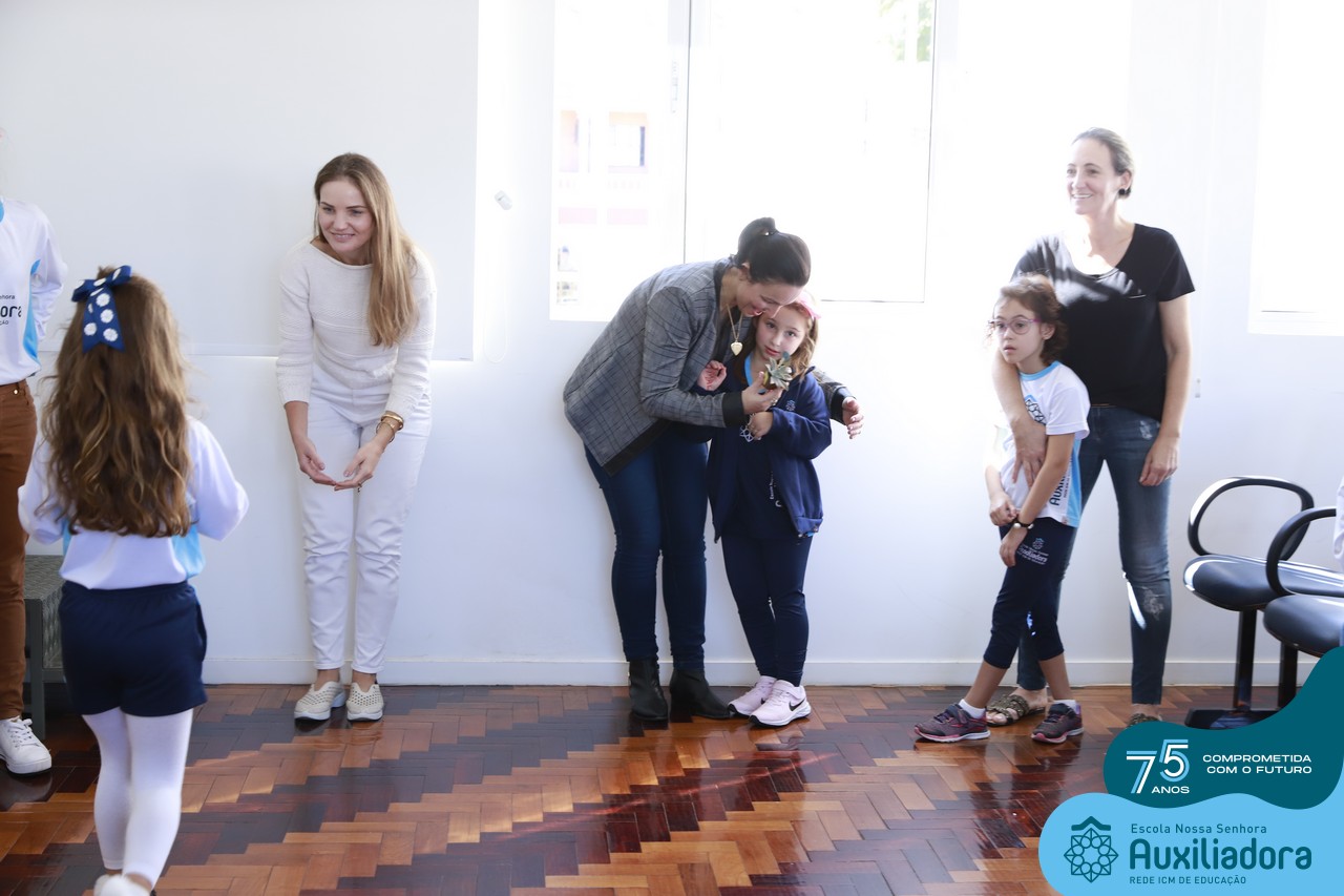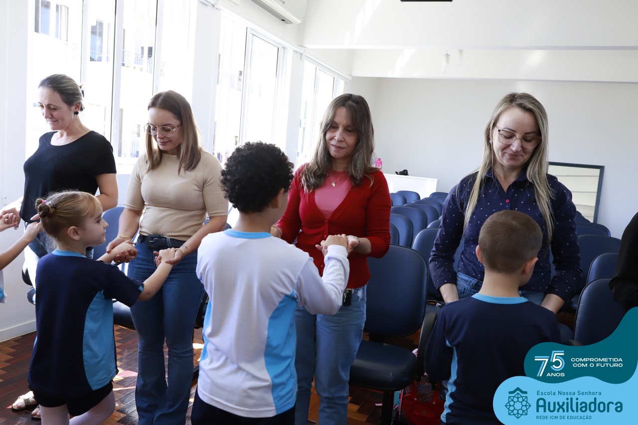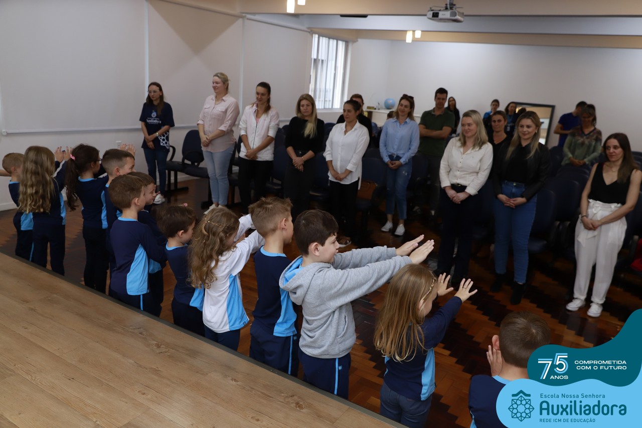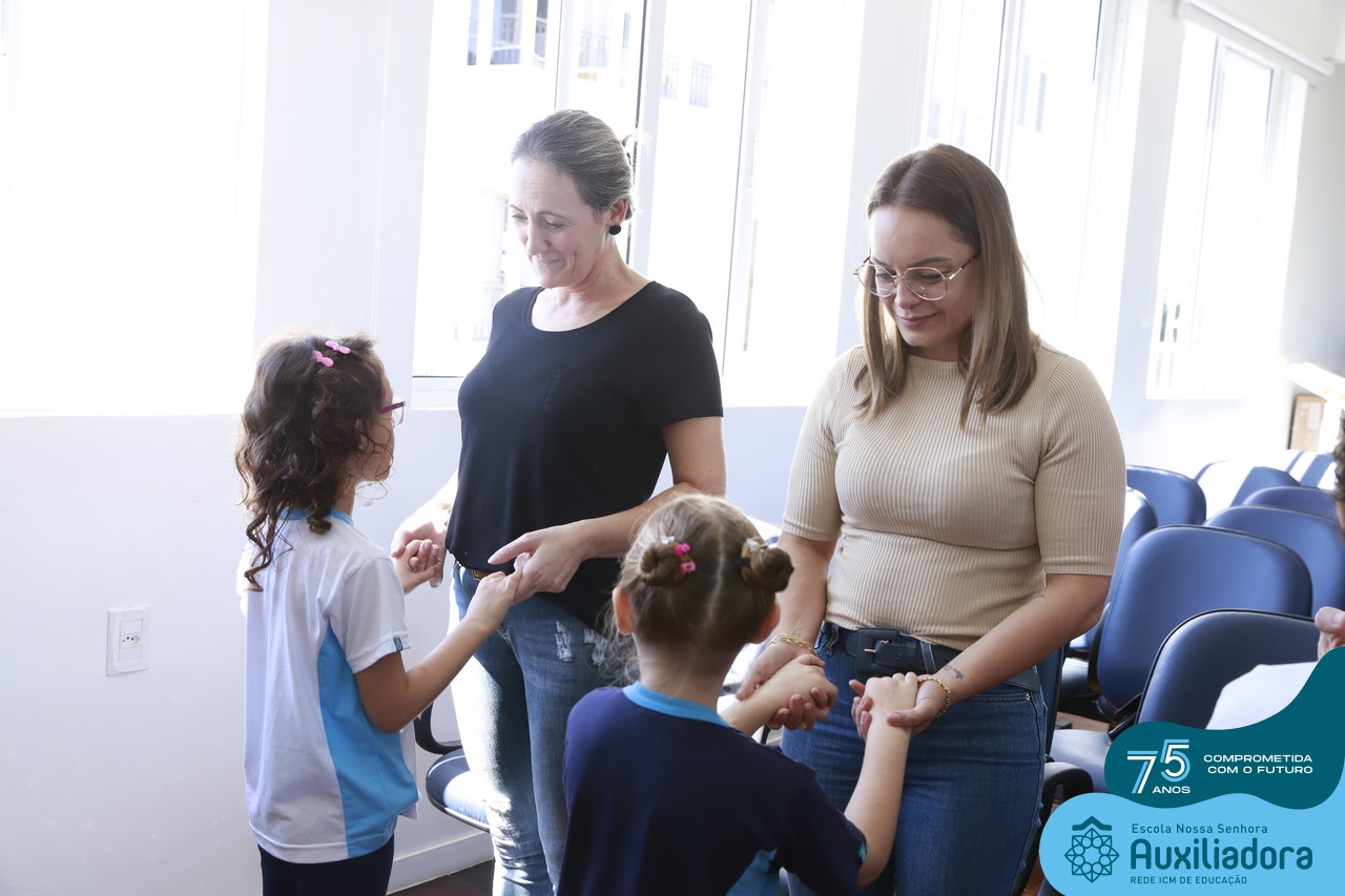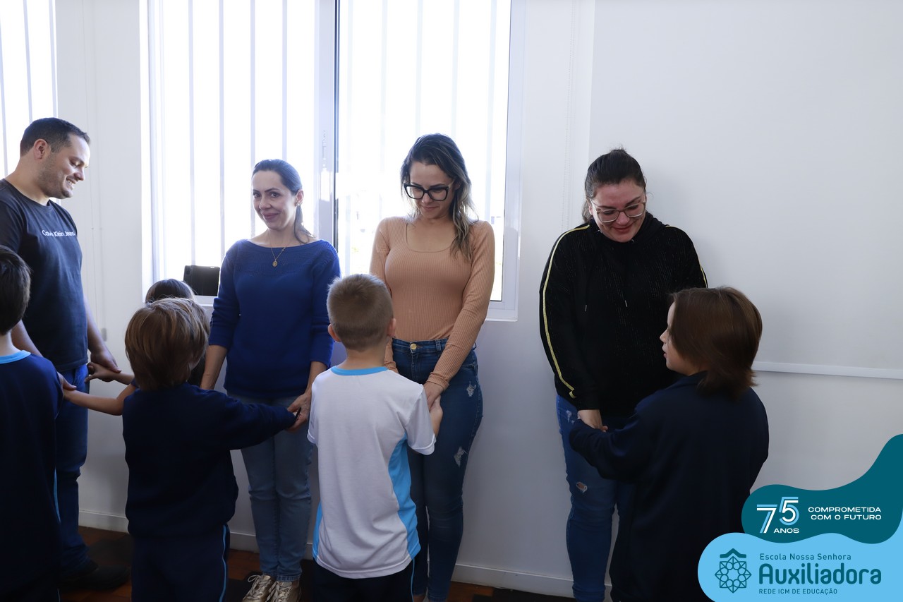 Foi um momento lindo e emocionante. Após presentearam suas mamães com lindas flores plantadas por eles. 😊