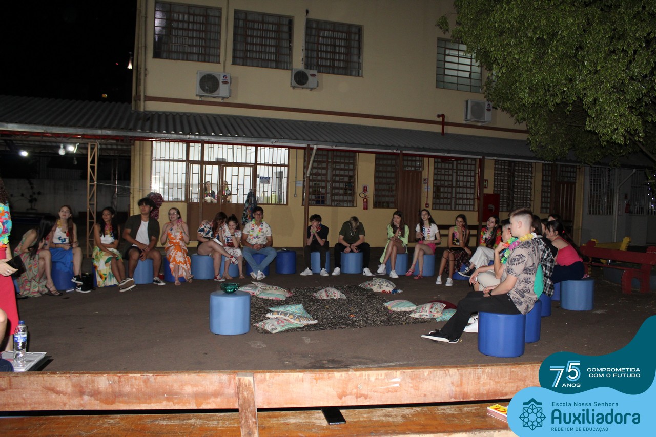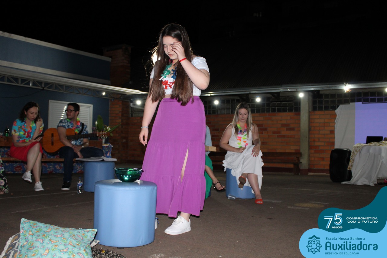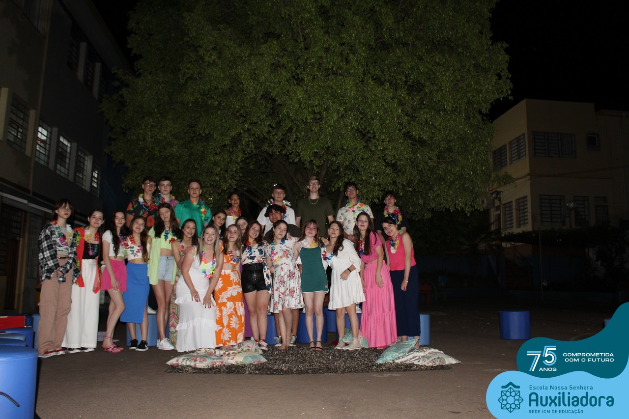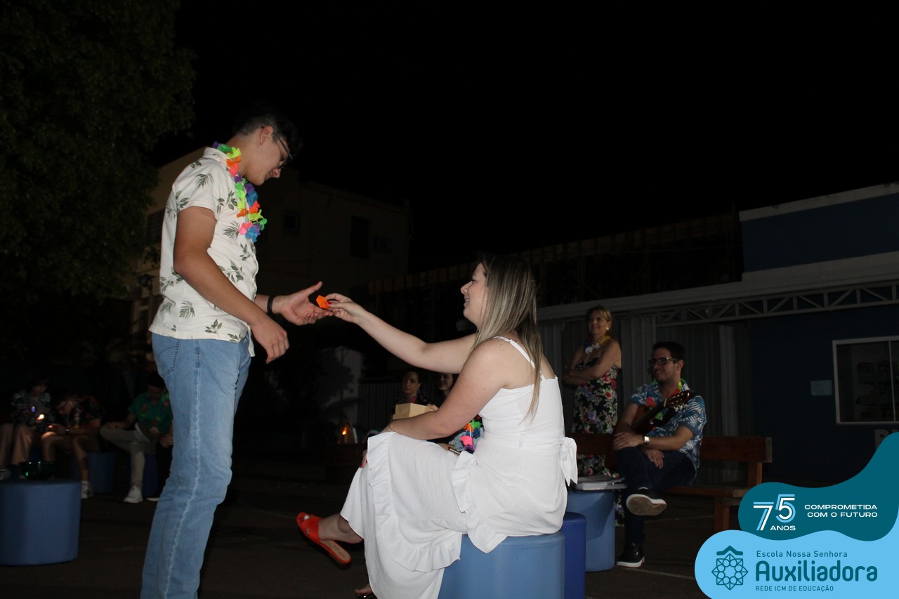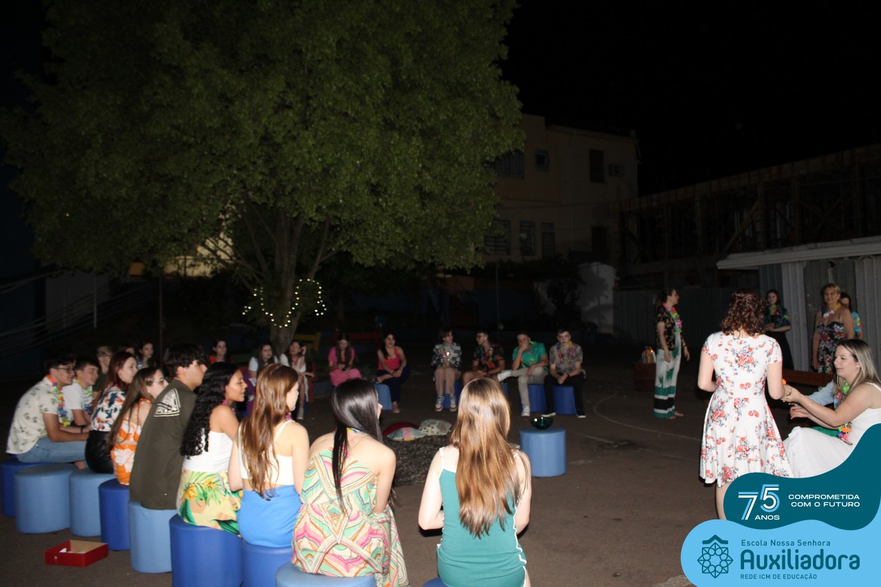 Em uma noite especial, alunos, professores e pais do 9°ano se reuniram para um Luau repleto de memória, sorrisos e música. Diante das atividades realizadas, os discente puderam relembrar momentos de suas histórias vividos na escola e, assim, compartilhar da magia que é conviver e se emocionar com a vida.