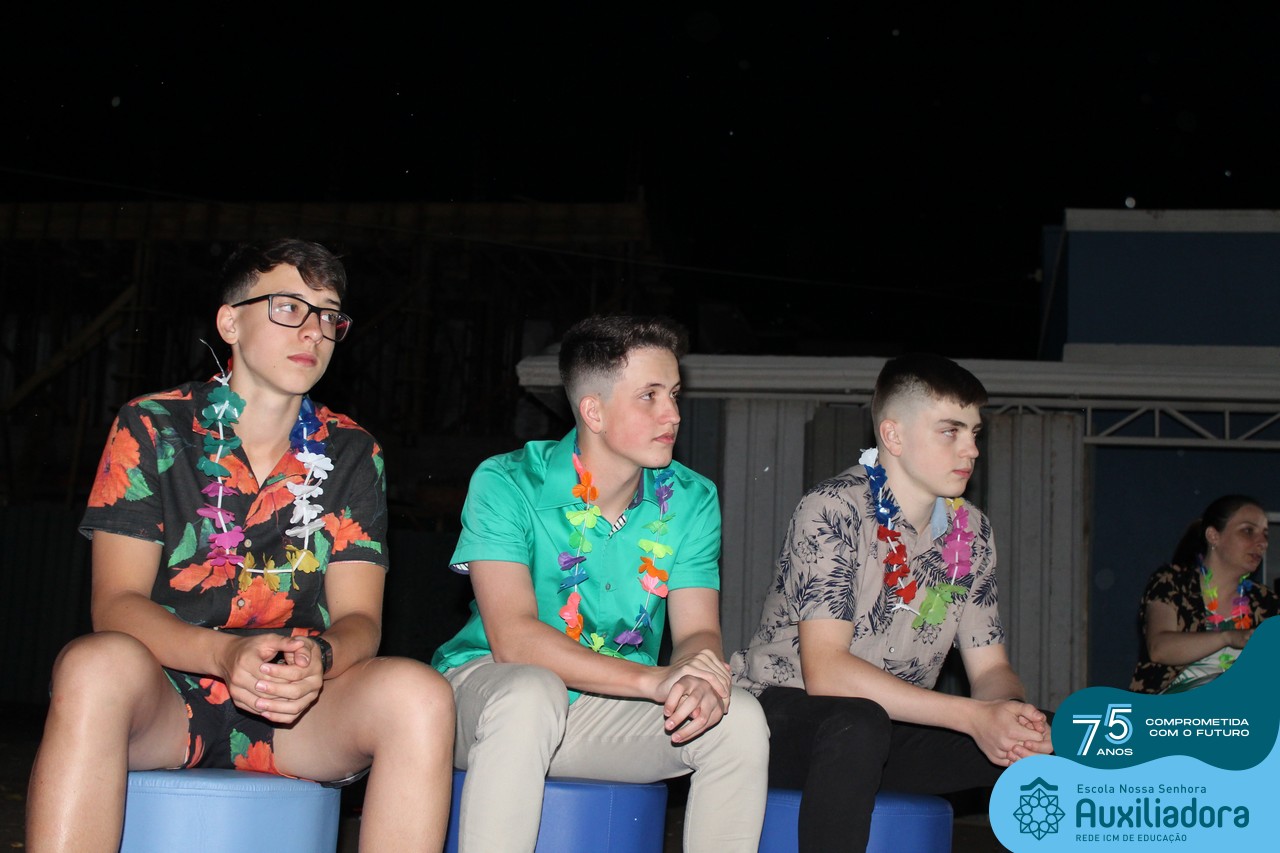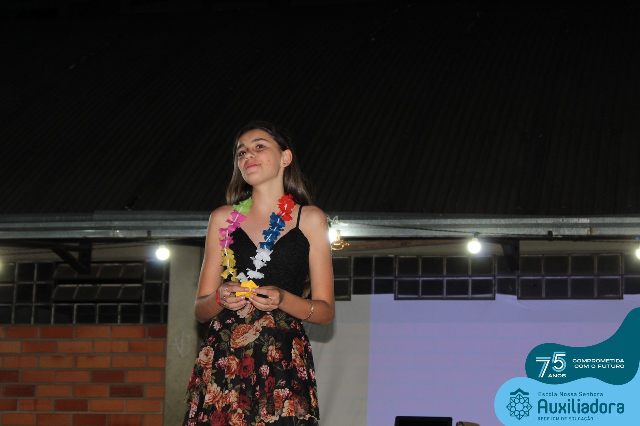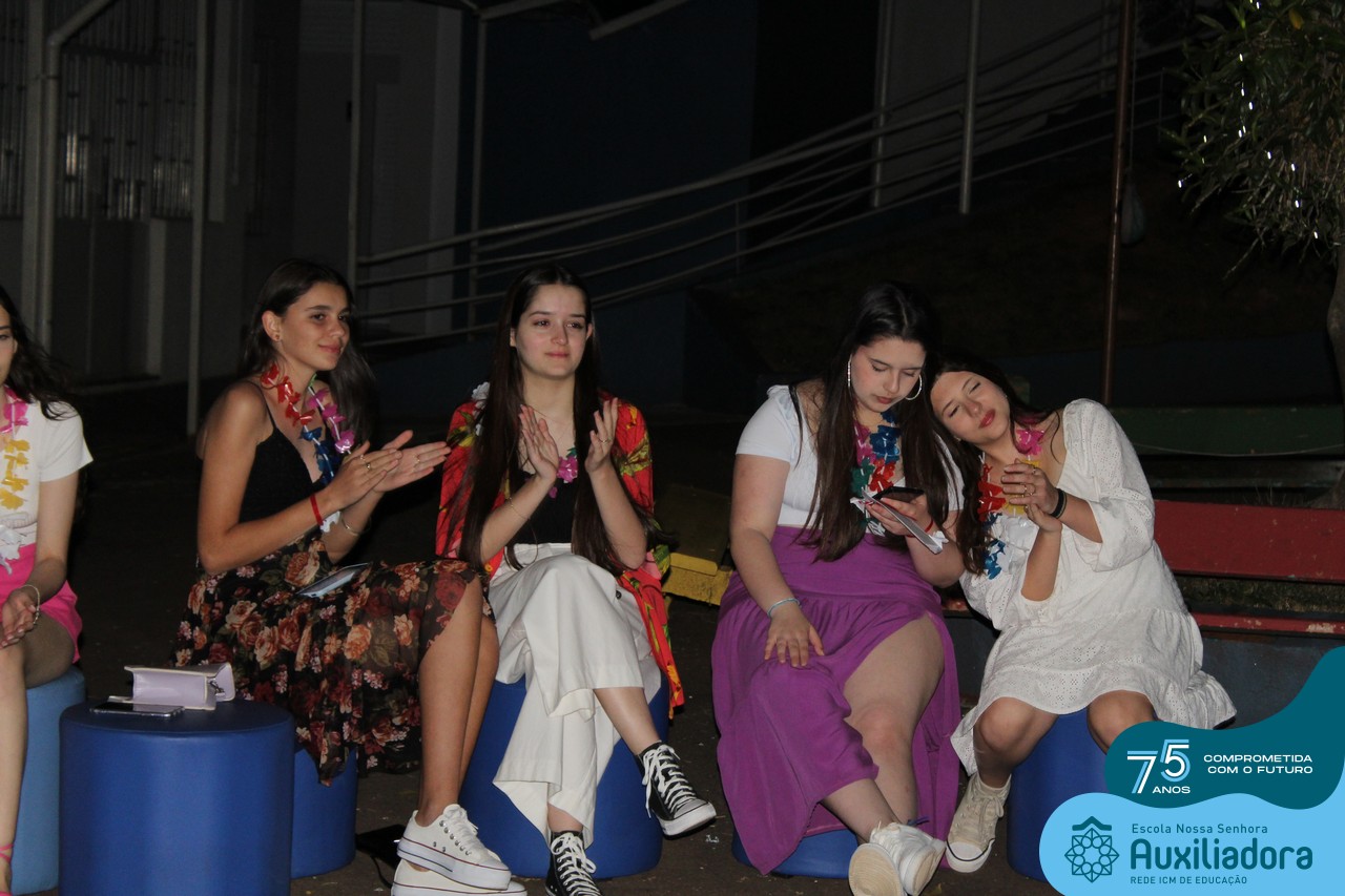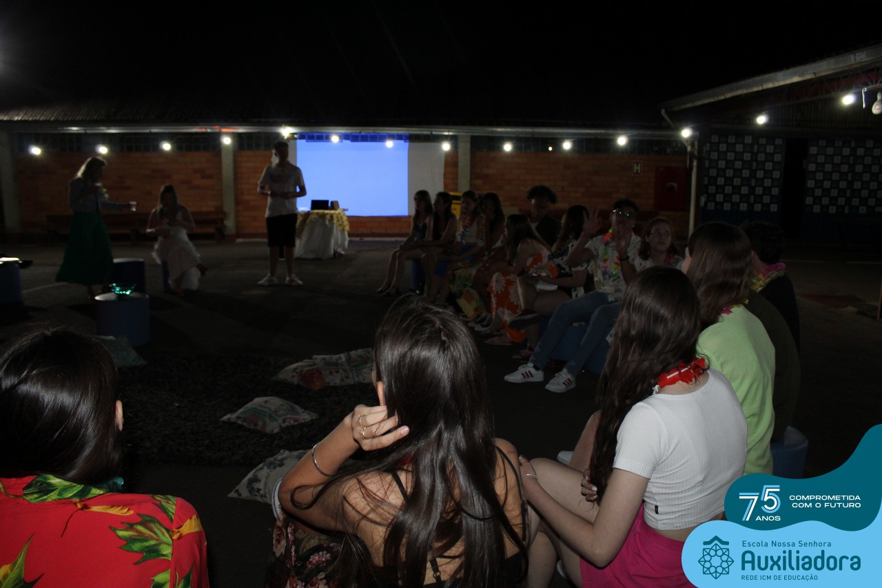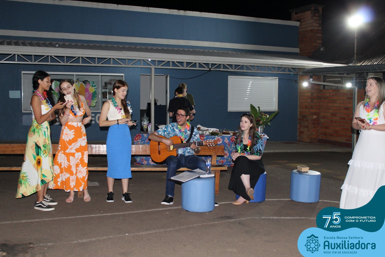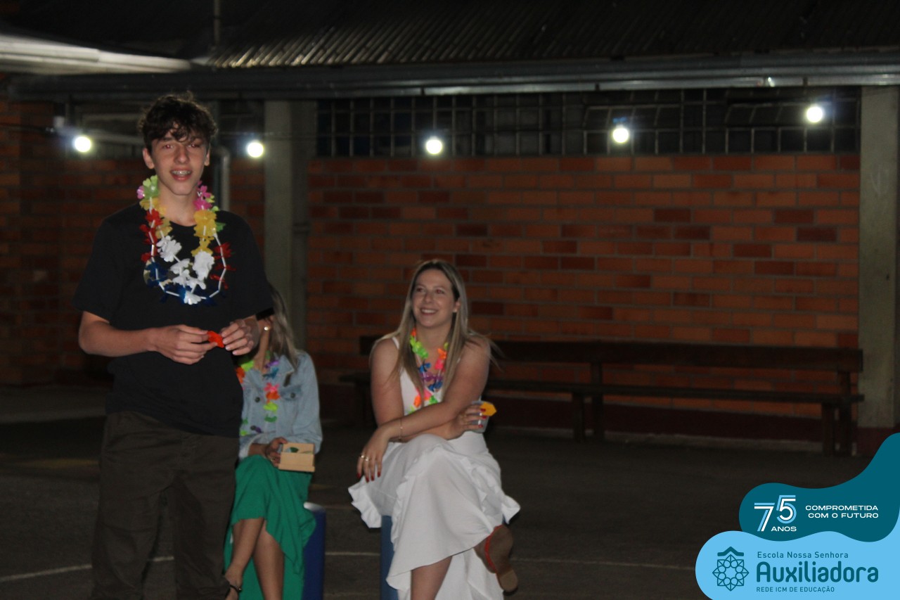 Em uma noite especial, alunos, professores e pais do 9°ano se reuniram para um Luau repleto de memória, sorrisos e música. Diante das atividades realizadas, os discente puderam relembrar momentos de suas histórias vividos na escola e, assim, compartilhar da magia que é conviver e se emocionar com a vida.